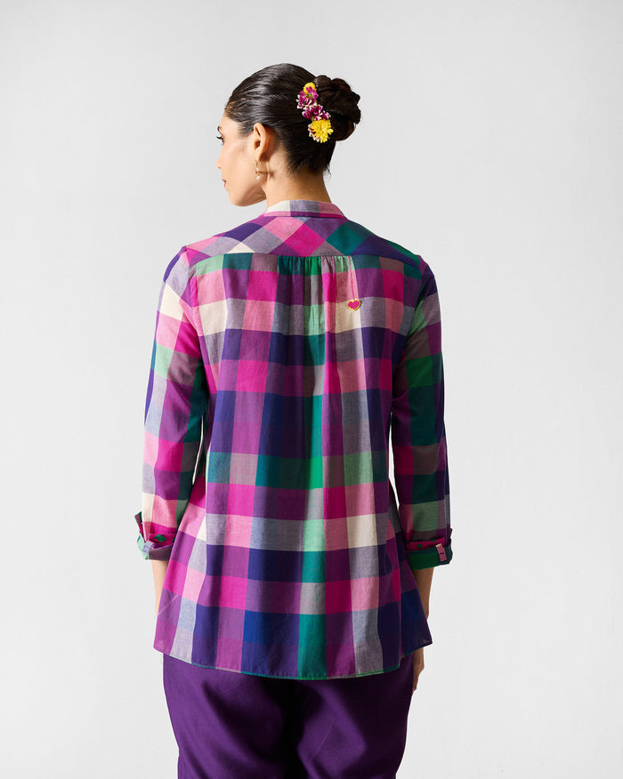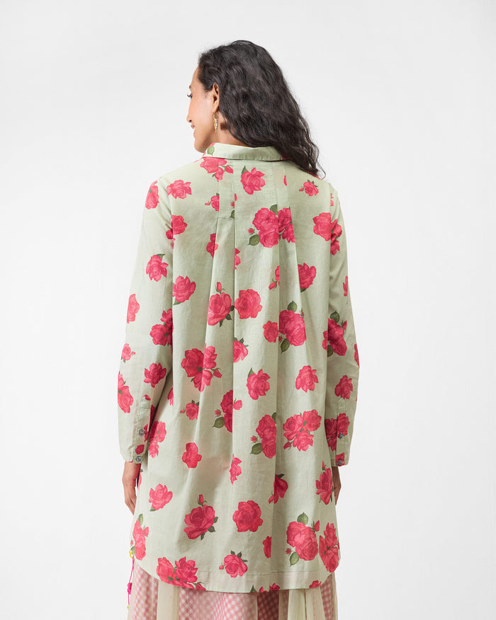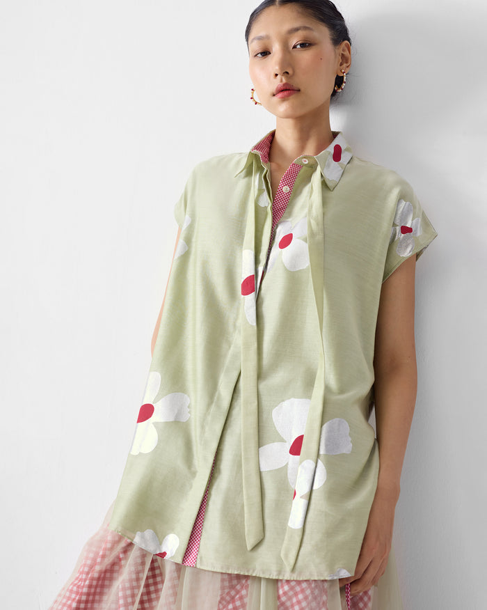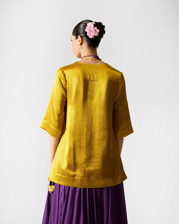 Flare Panelled Shirt - Chartreuse & Gold Printed