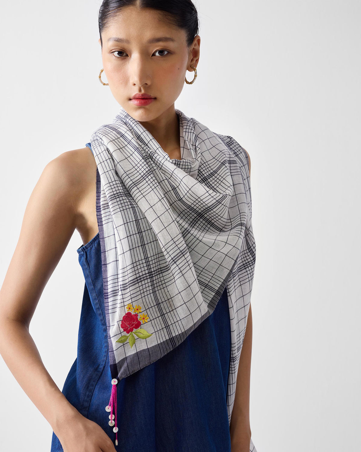 - Classic checks, reimagined. The Muse Scarf is an everyday staple in timeless ivory and black.