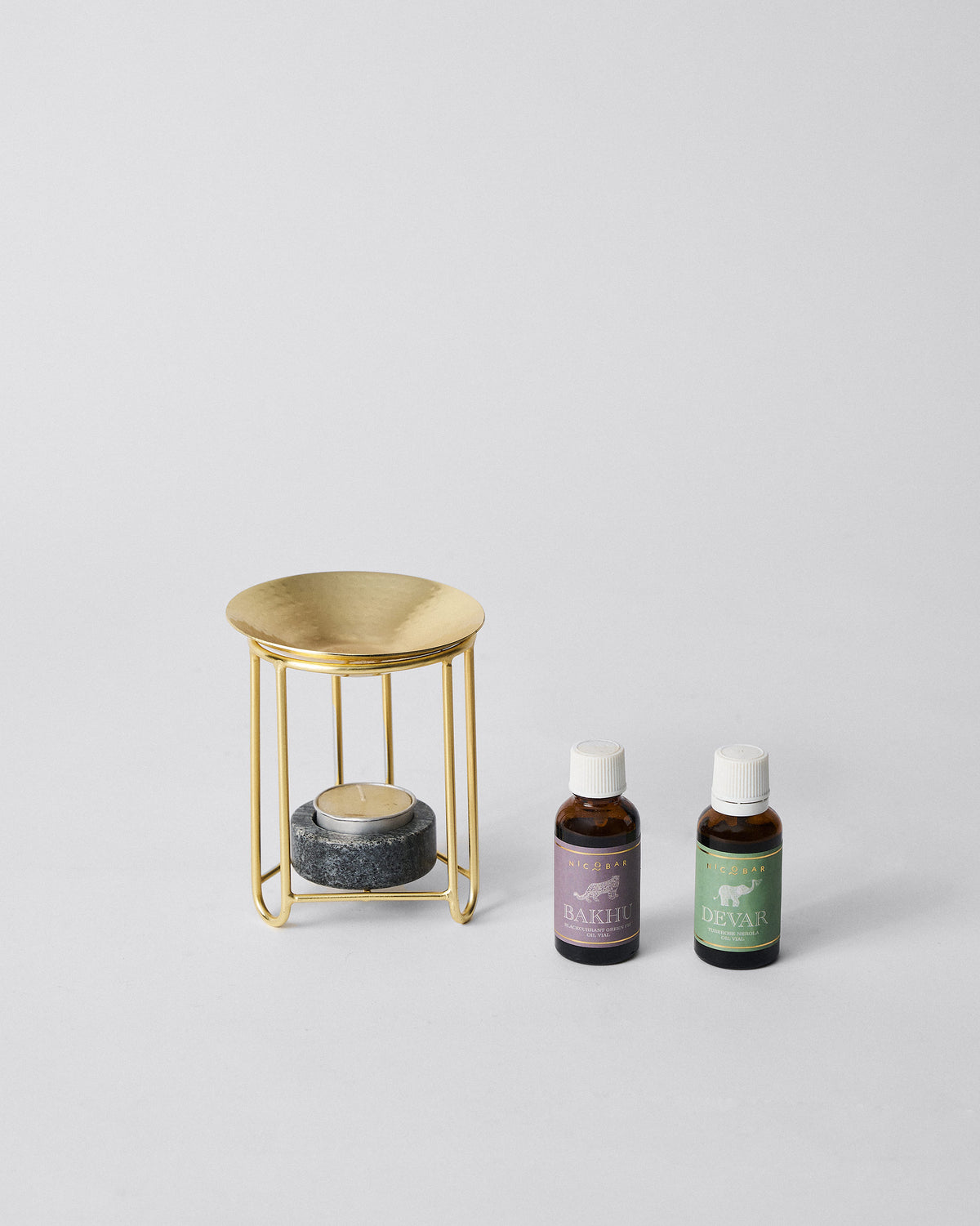 - The perfect set to start your day - the Morning Calm Set is perfect to elevate your everyday rituals with the Asfar Diffuser with a tealight, the Bakhu Oil Vial and the Devar Oil Vial.