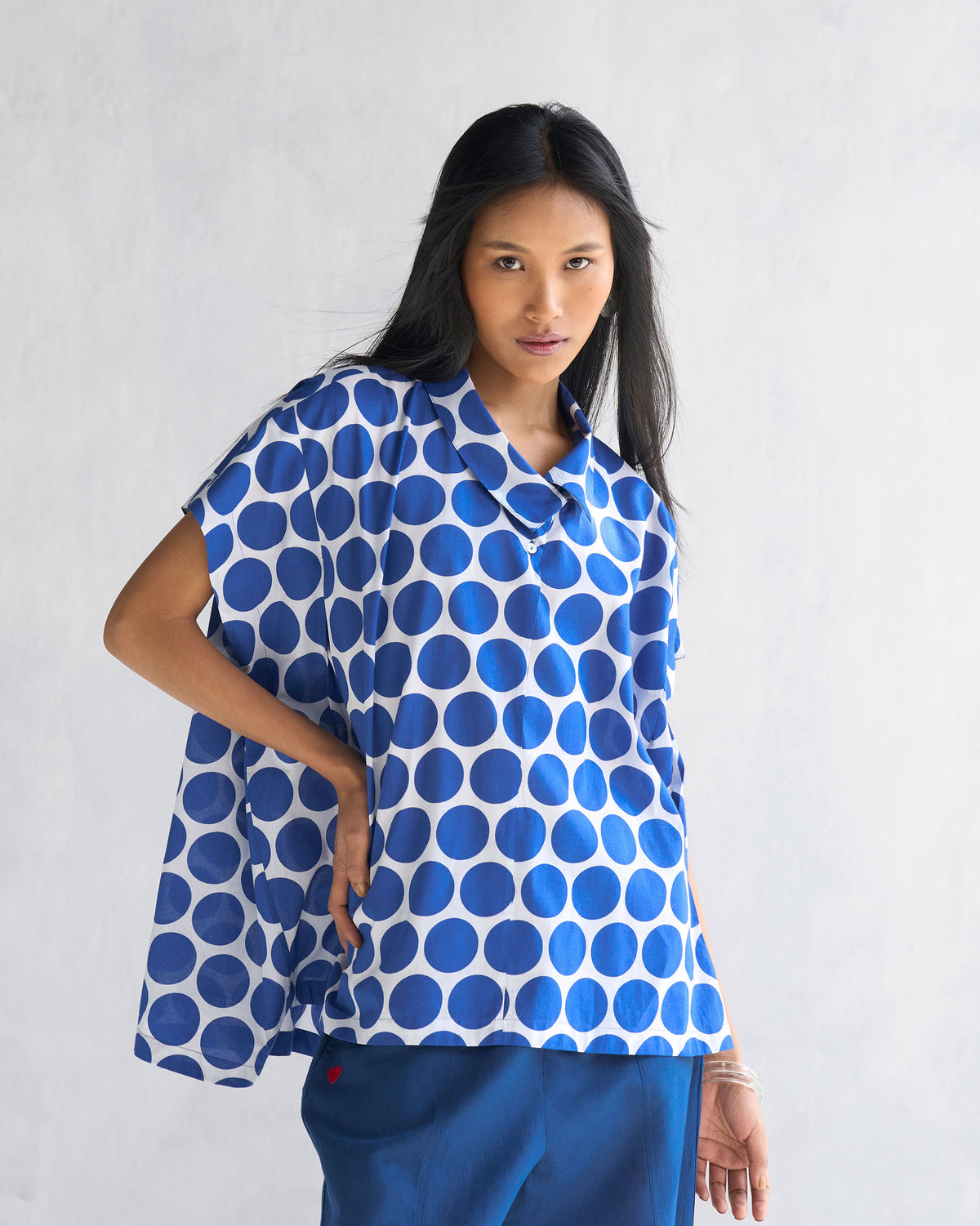 - Sweet polkas from paradise make their way into the Camber Top in a classic palette of navy and white. The striking pattern and relaxed fit takes you from dawn to dusk with ease, no matter the occasion.