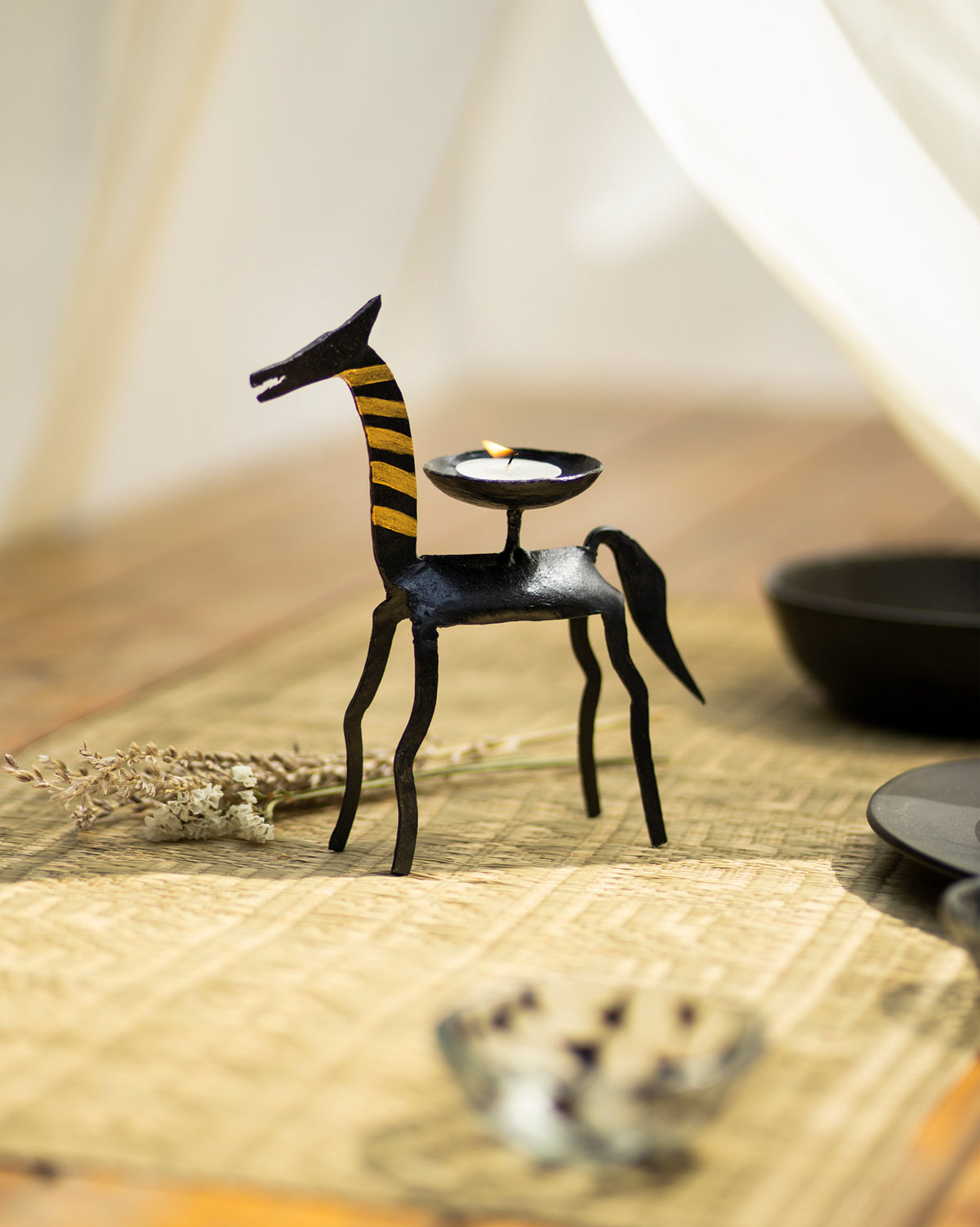 - Crafted in iron with a black and matte gold finish, this votive will infuse your favourite space with a little zen