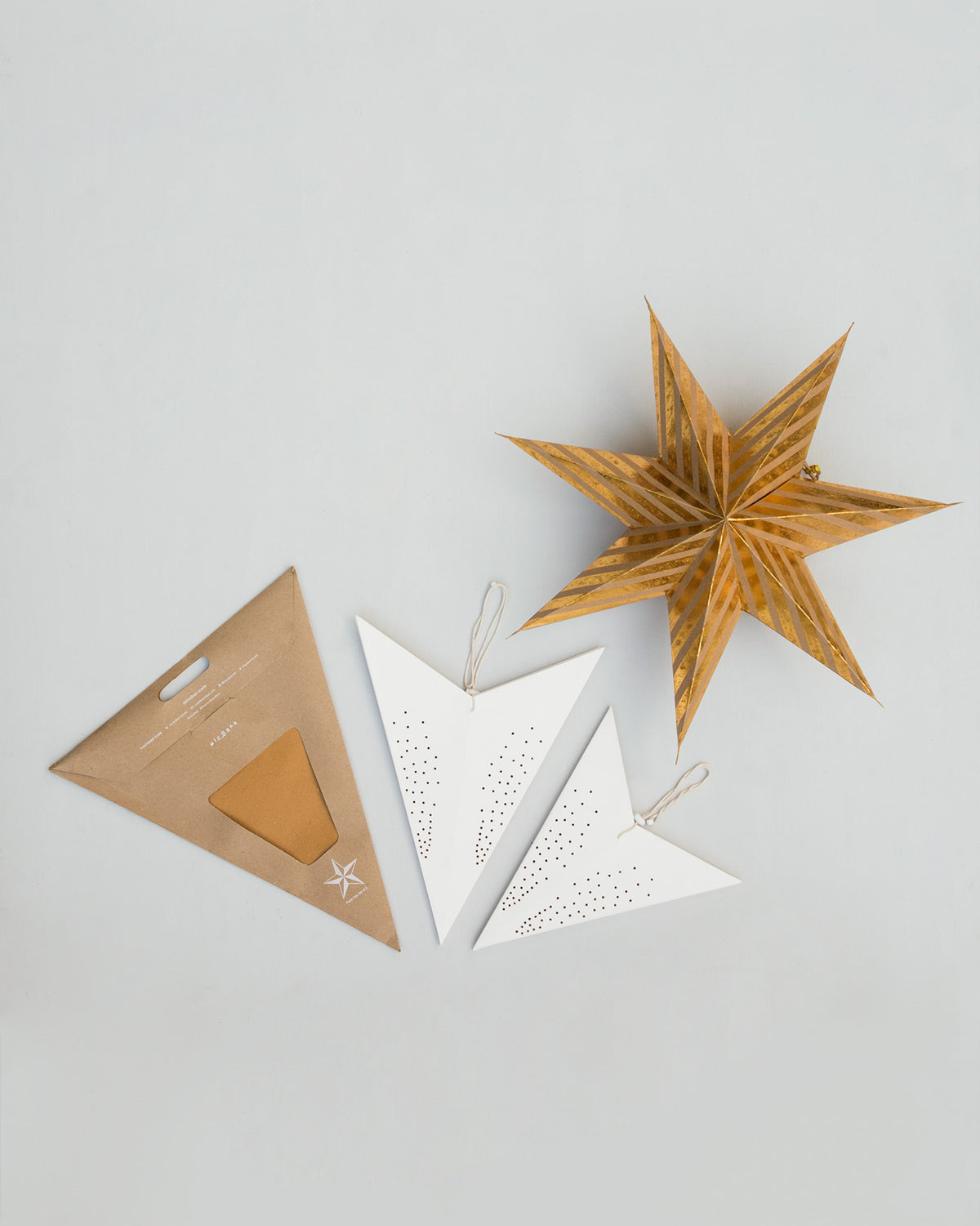 - Gently gleaming into cold winter nights, our paper stars in ivory and gold foil stripes will set you up for a sparkly Christmas month.