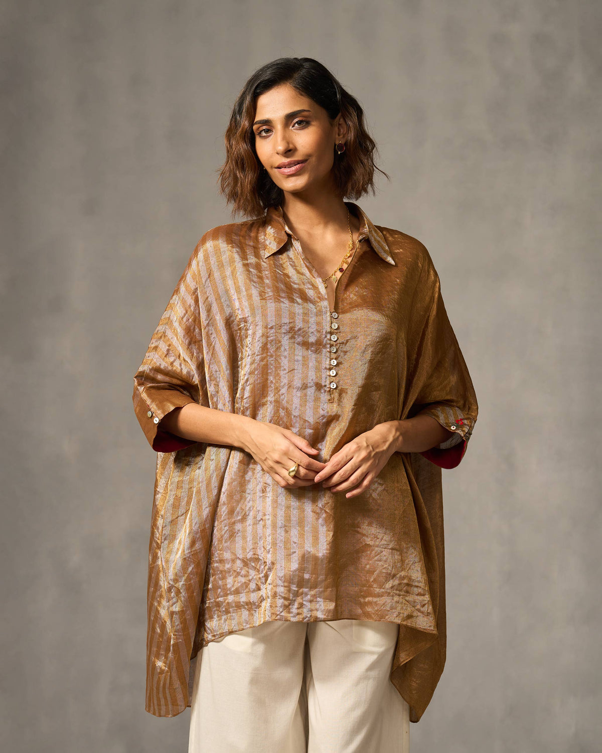 - The Haala Tunic makes a glowing impact in gold and silver , making this piece an easy pick for celebrations.