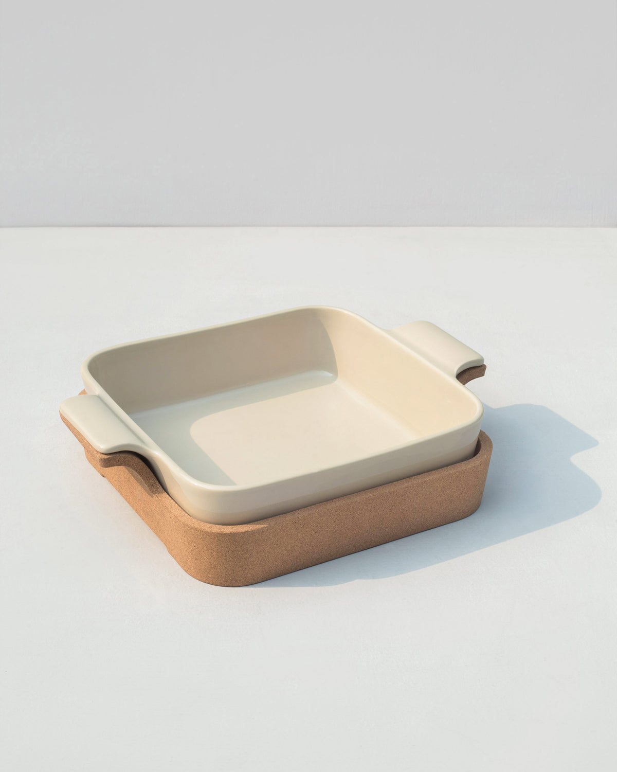 - Here's proof: our aqua Java Baking Dish with cork lining can be taken from kitchen to table to match your overall theme and setting
