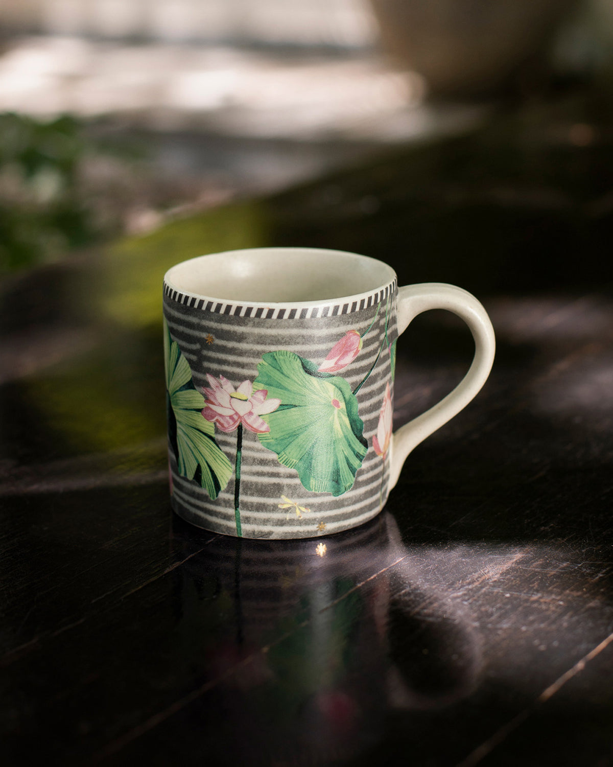 - For the perfect sip here comes our Kamal mug with a tropical floral pattern peppered with gold