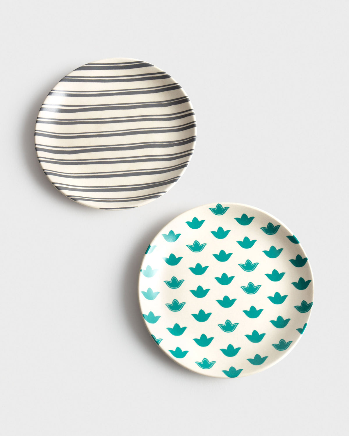 • Our stylish stoneware Lotus Aqua plates feature modern graphic design