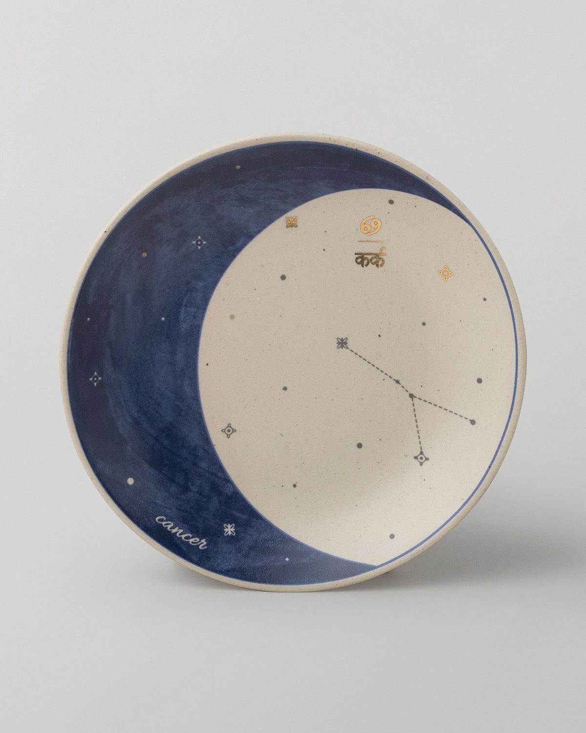 - In a beautiful midnight blue hand-painted on stoneware, there's a piece for every sign in the zodiac.