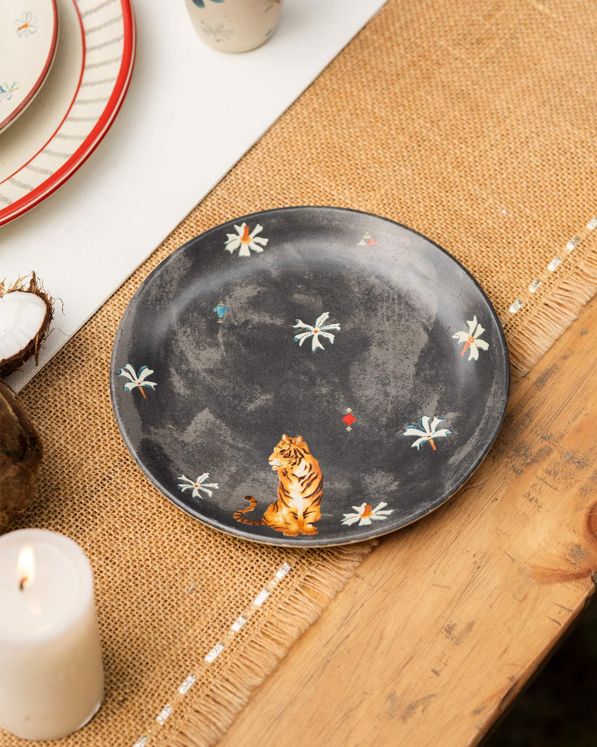 - Crafted in smooth stoneware, our quarter plates are dotted with motifs inspired by the Teesta river's path through Bengal