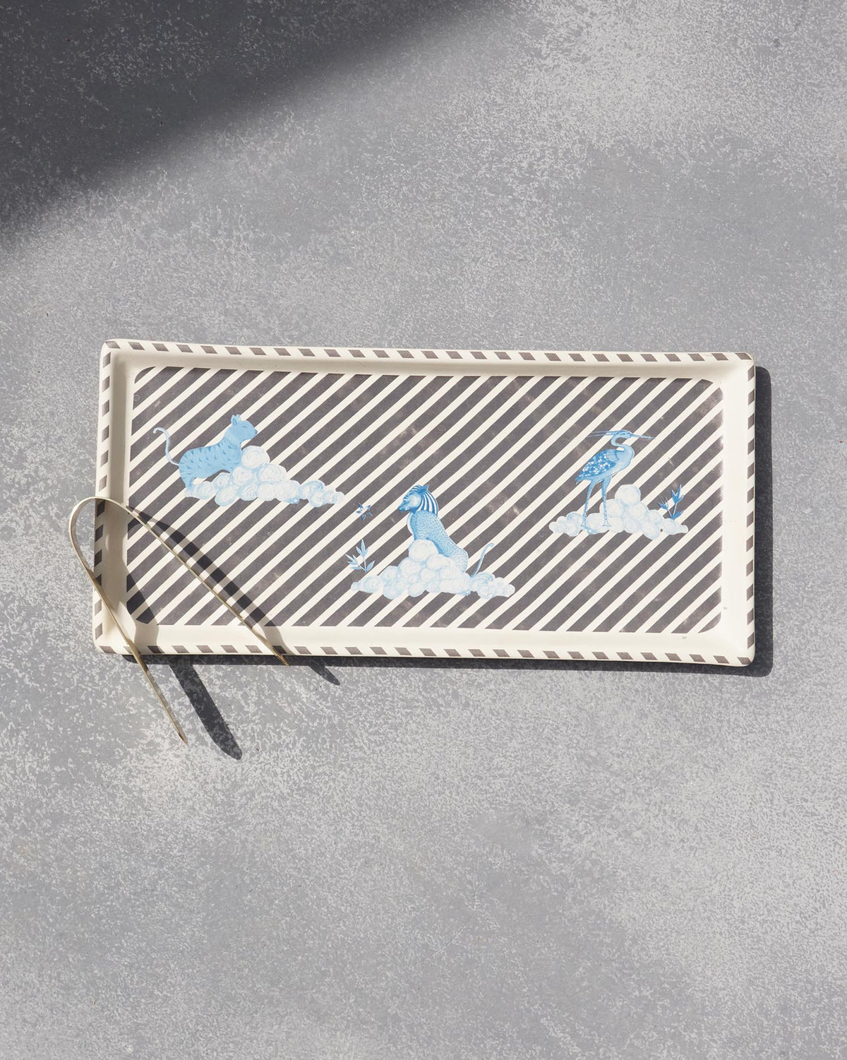 - Milk and cookie time has never looked better: This graphic stoneware tray comes with a pair of brass-finished tongs to help you serve with ease and style