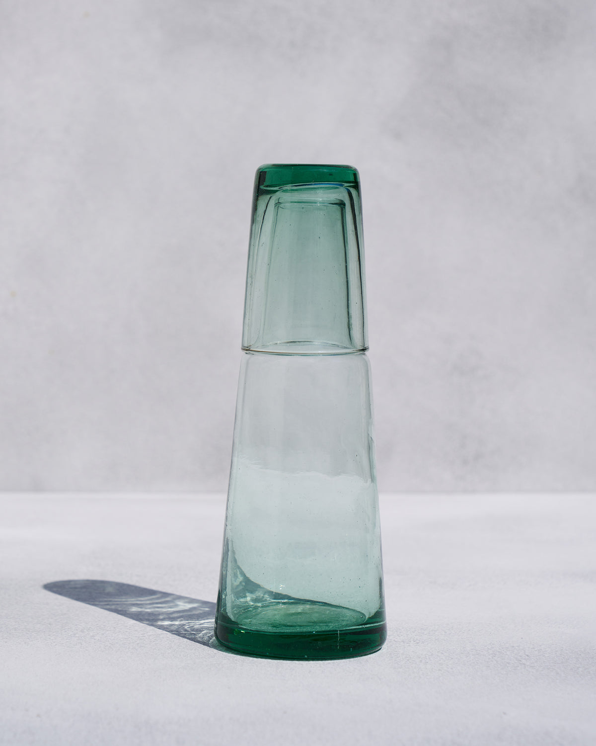 - The Rise carafe and tumbler set has a slight green tint, characteristic of recycled glass. It is made from 100% post consumer recycled glass.