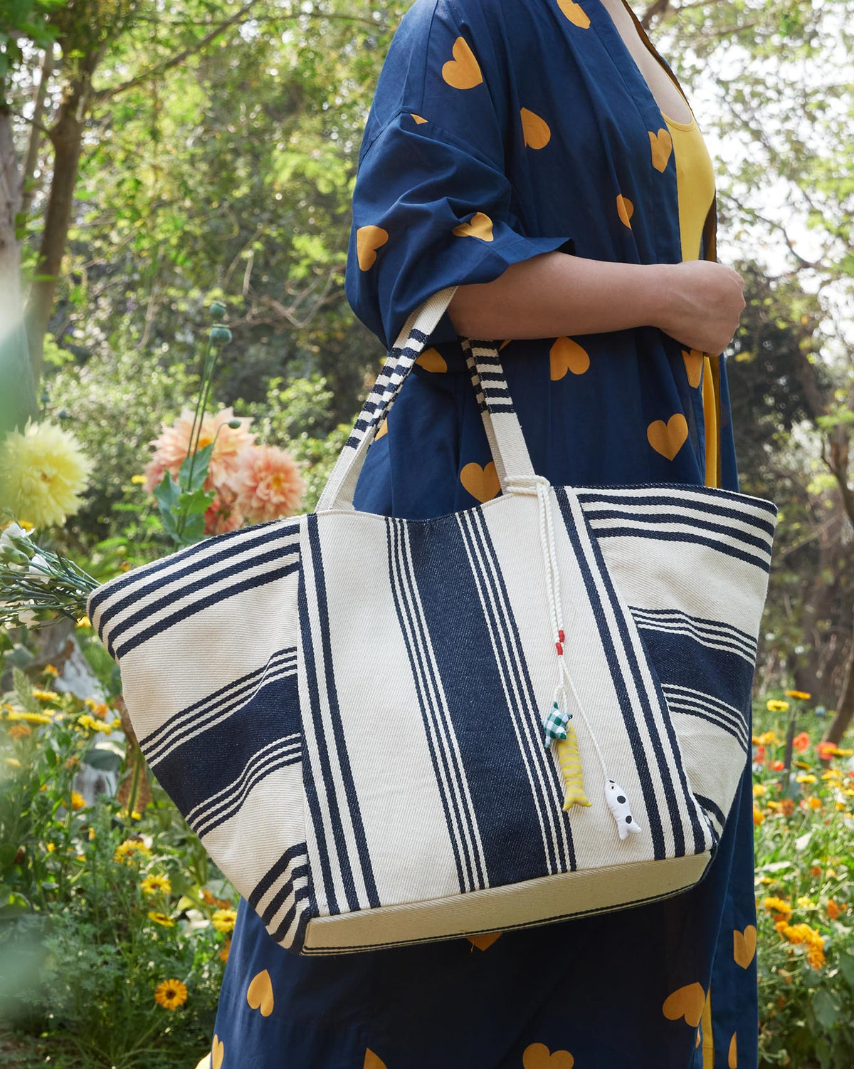• A black and ivory spacious canvas tote bag for you to take far and wide