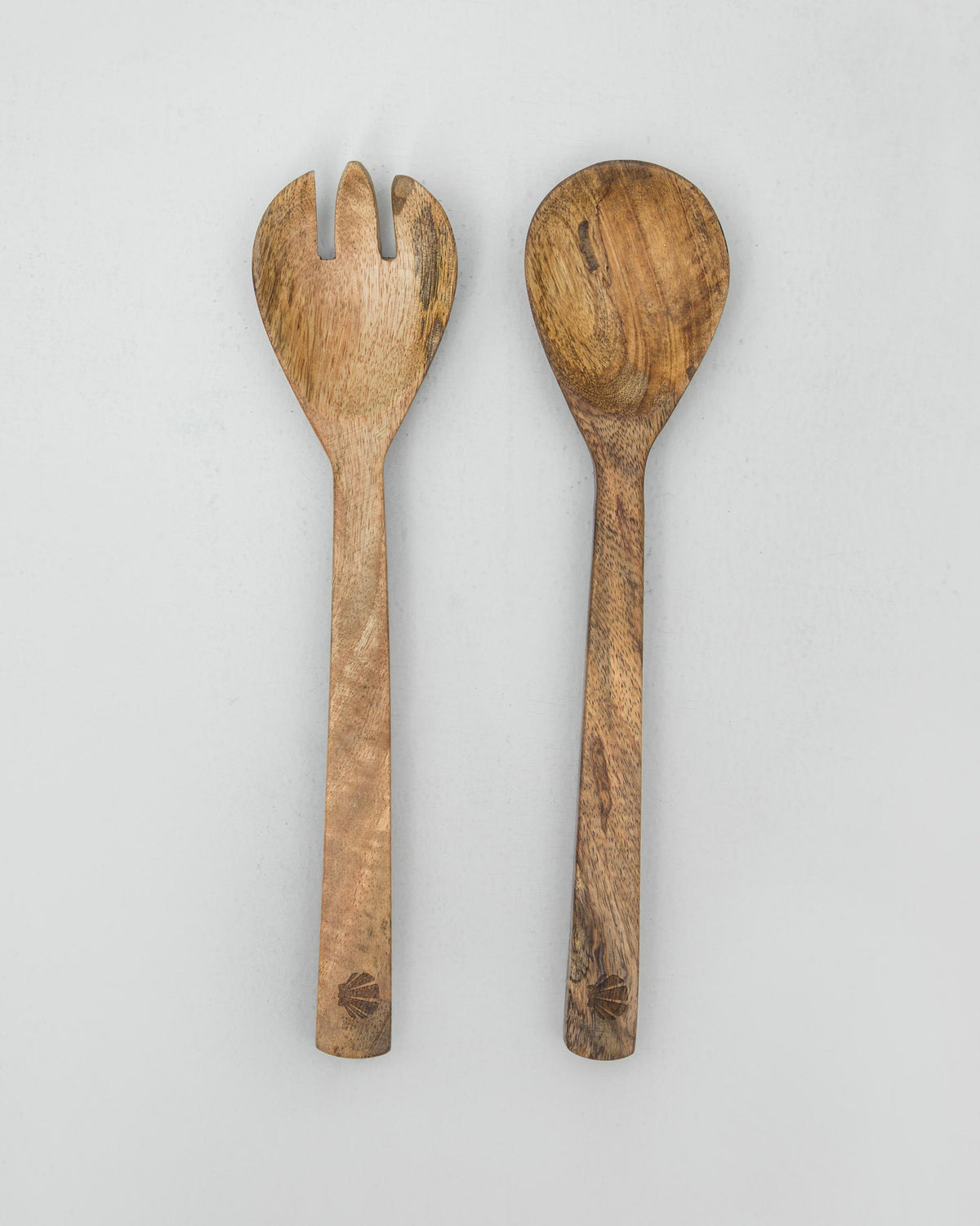 - There's something special about our classic wooden salad servers: a shell motif carved on the edges.