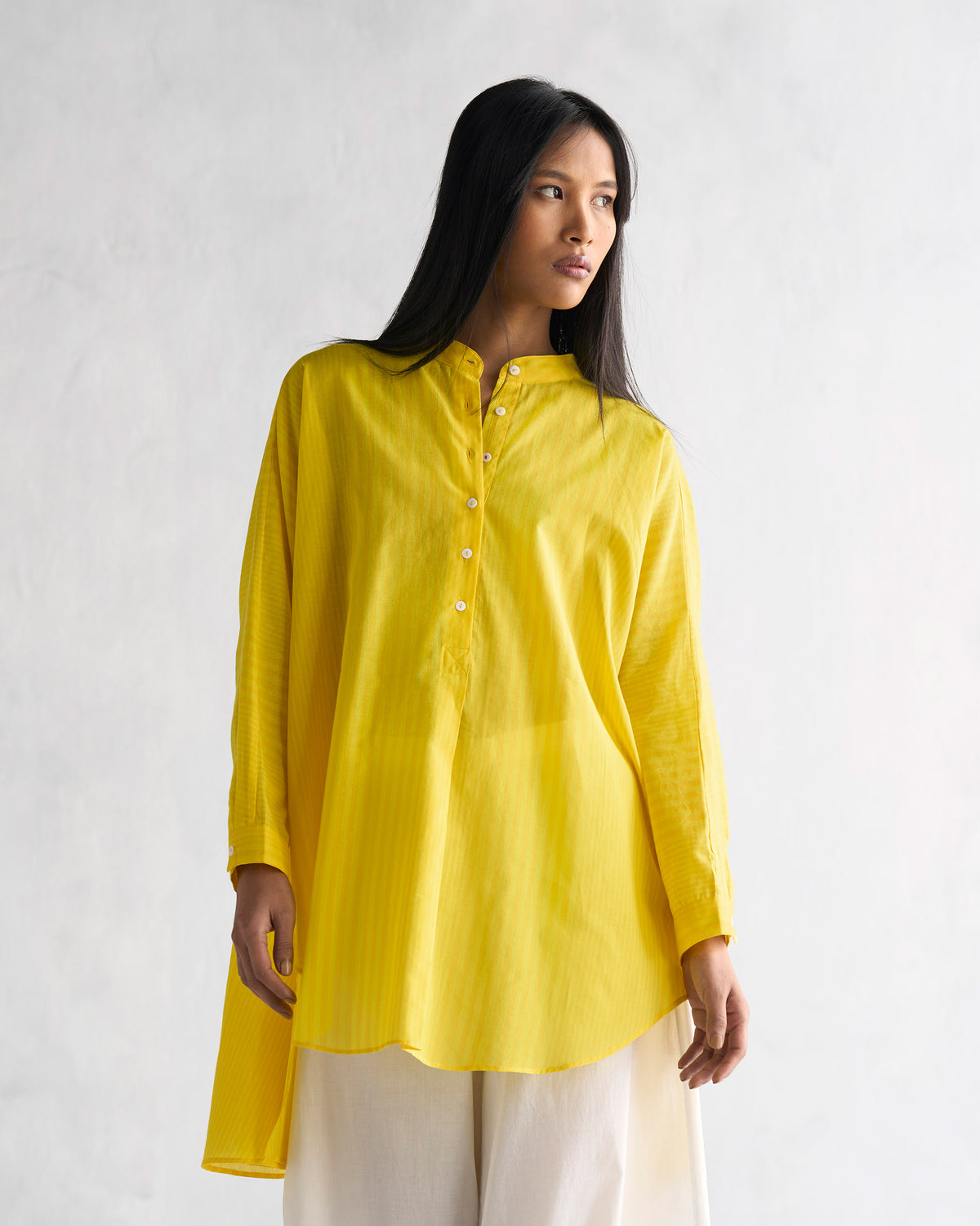 - A versatile bright yellow shirt with front buttons and a band collar, the Tab Top’s subtle stripes make heads turn no matter the occasion. Feel bright, breezy and look your best in it.
