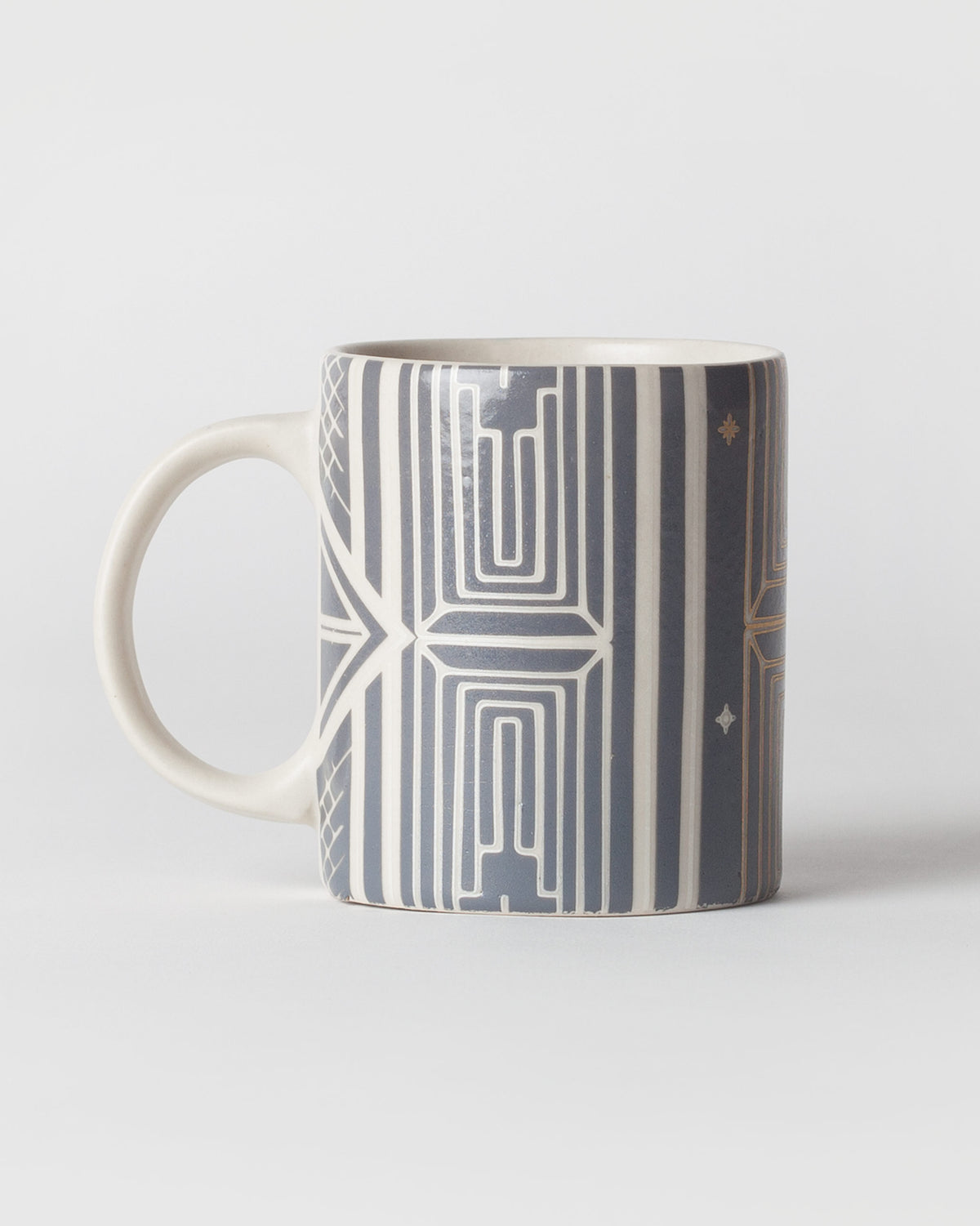 - Inspired by the art deco architecture of Mumbai, our Tara Mug features gold and silver accents on a charcoal base