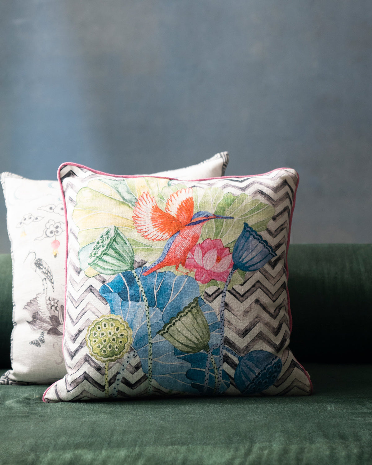 - Double impact, double surprise: a digi-printed cushion cover with lush motifs and a subtle stripy back