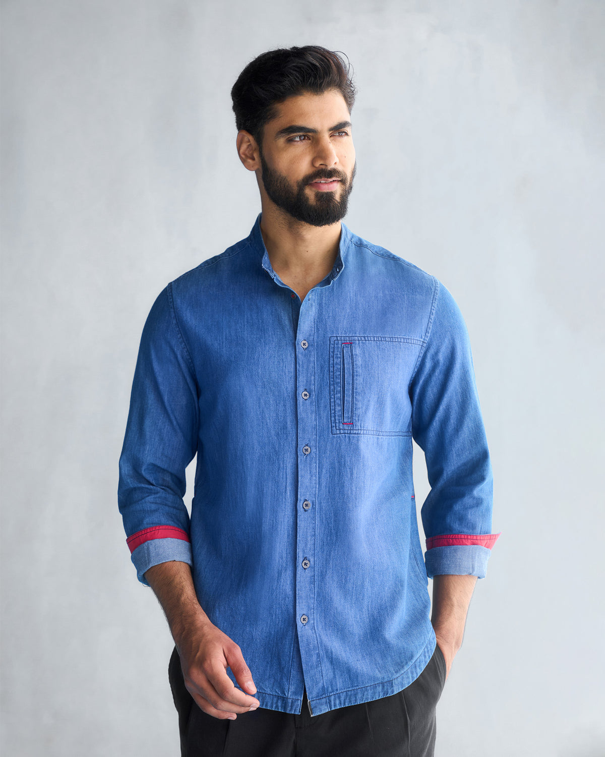 - Love Denim? Make a statement with this shirt with details of deer embroidery in red