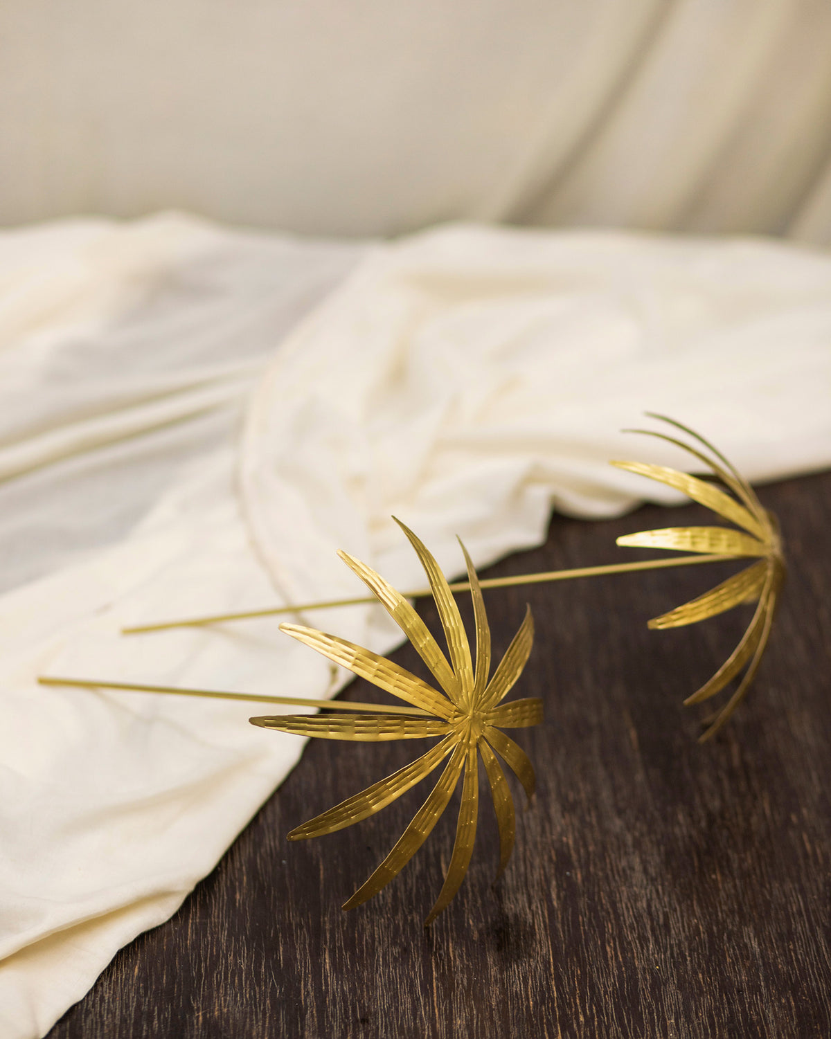 - Cast in iron sheet metal with a gleaming gold finish, this accent piece will add a hint of understated glamour to your table setting