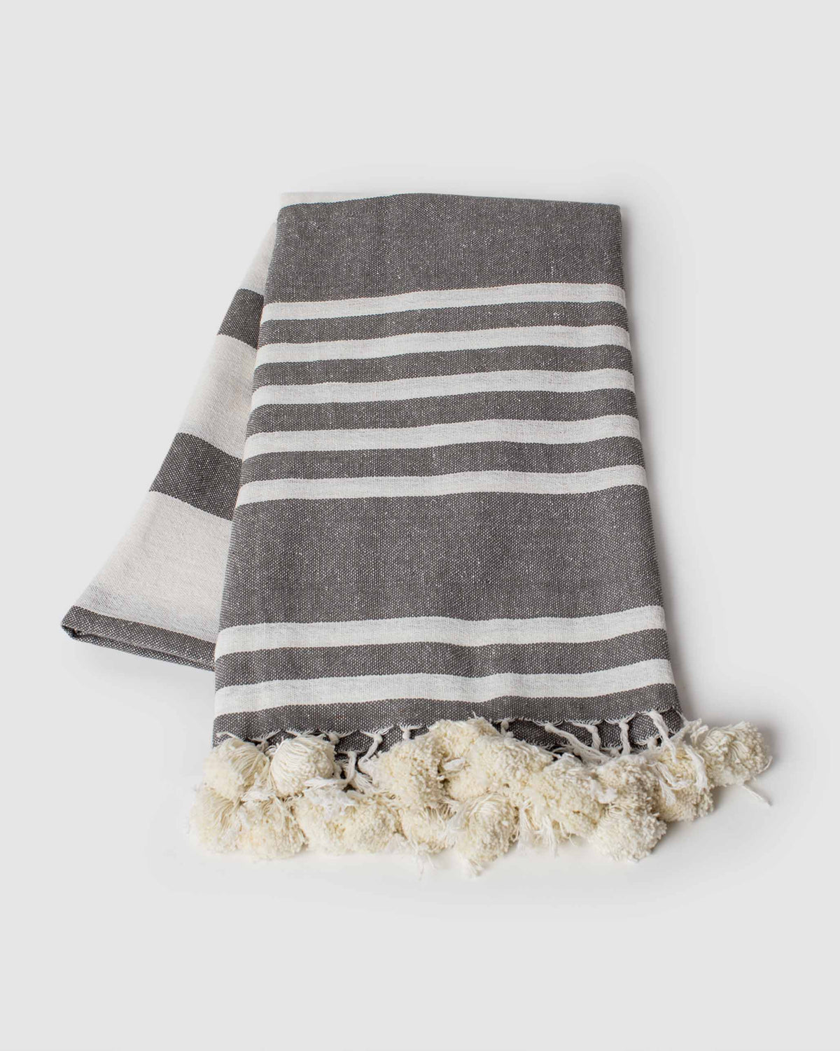 • A throw to place on your living room couch or across the foot of the bed, lined with a light fringe, and has a modern, woven stripe