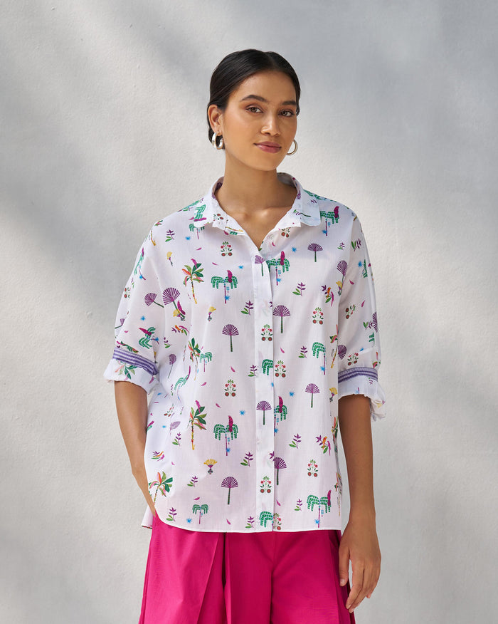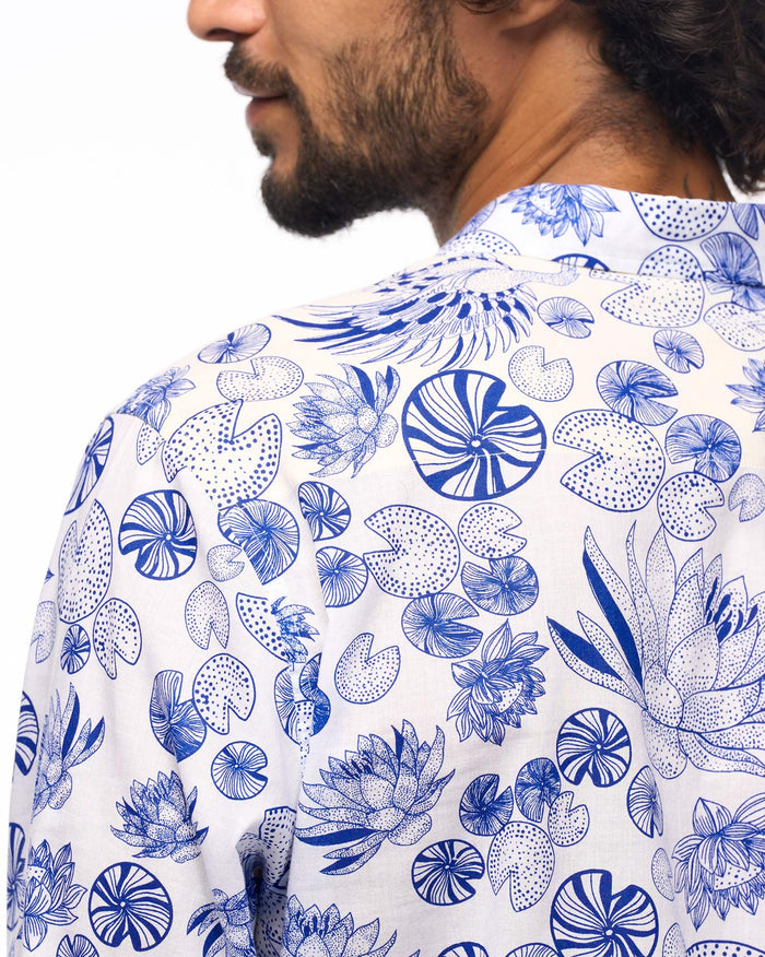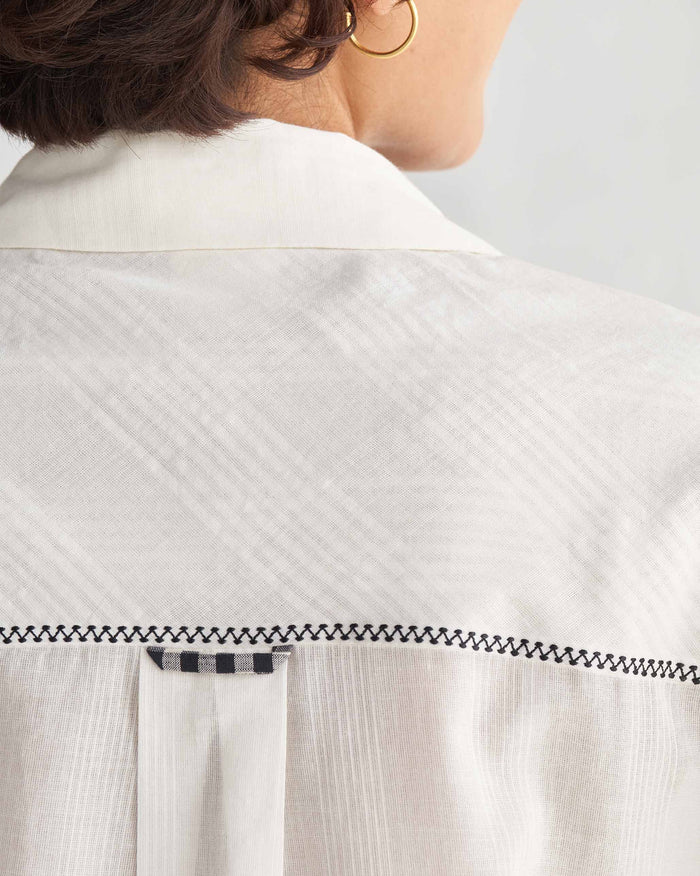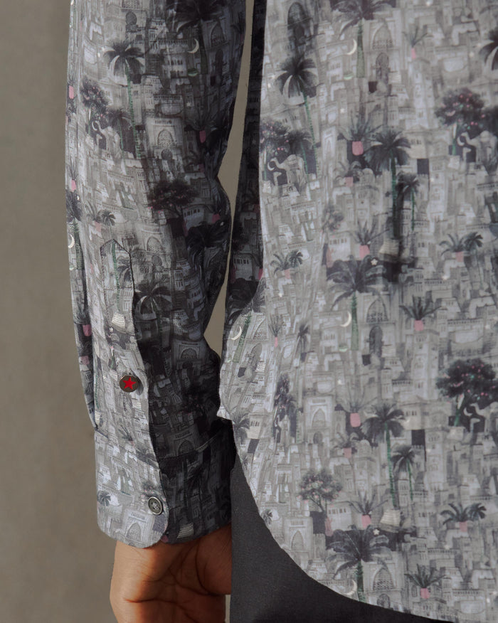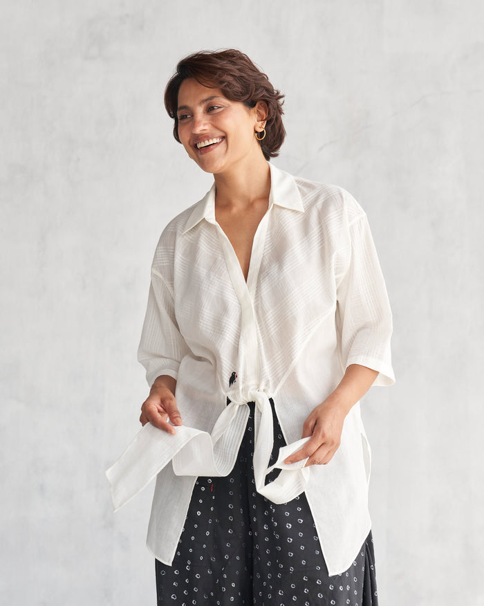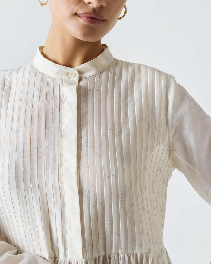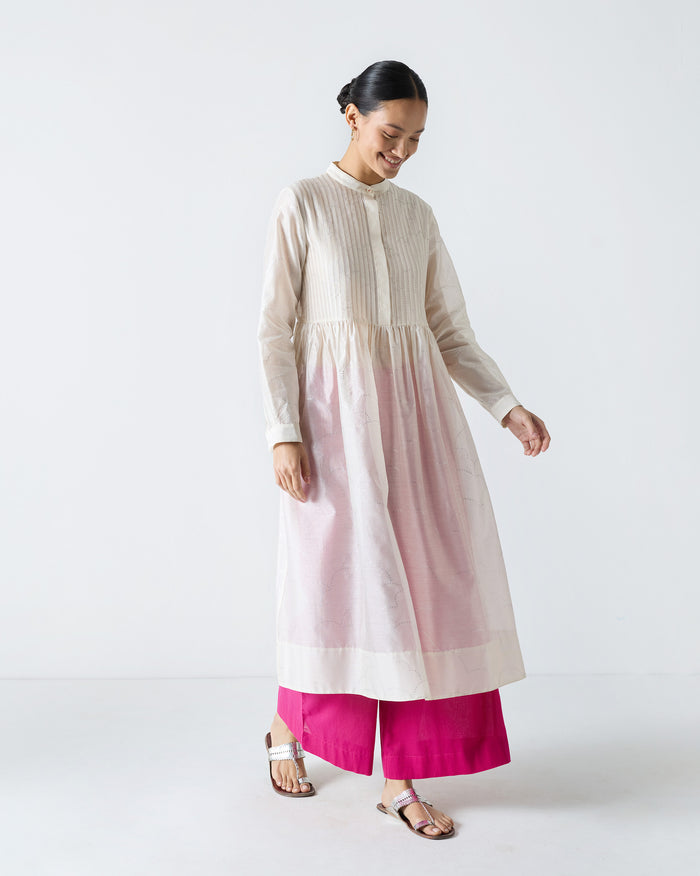Crescent Pintuck Kurta - Ivory & Silver Print
