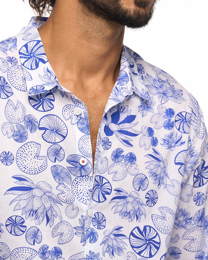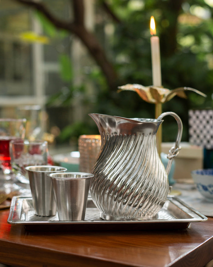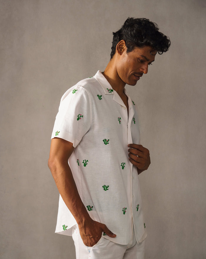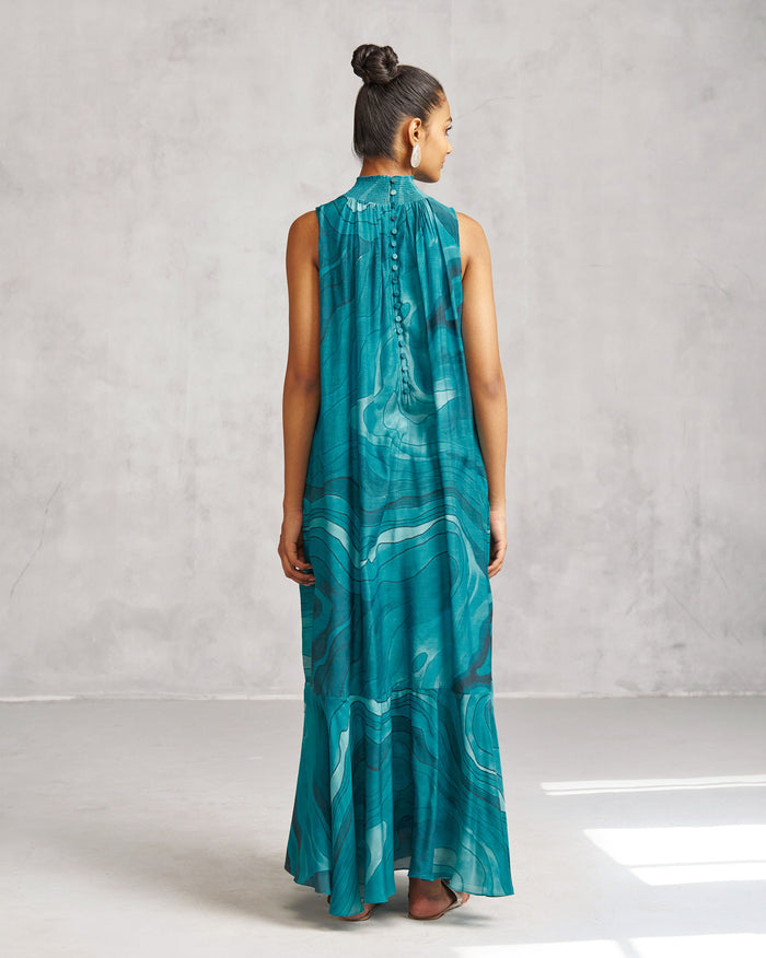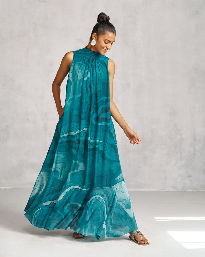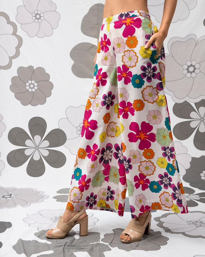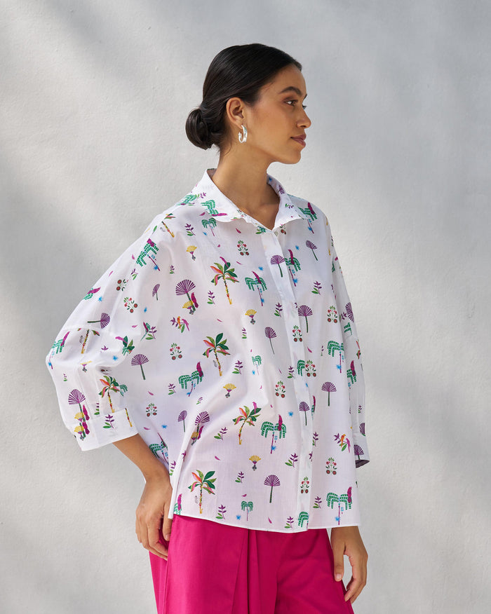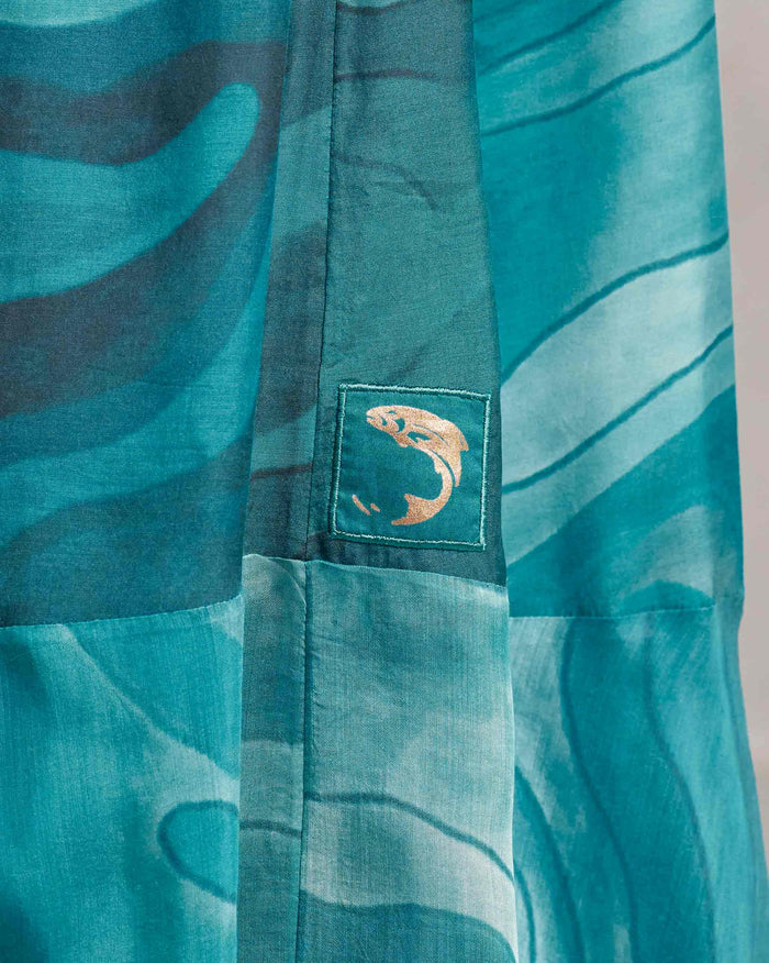 Crescent Pintuck Kurta - Ivory & Silver Print