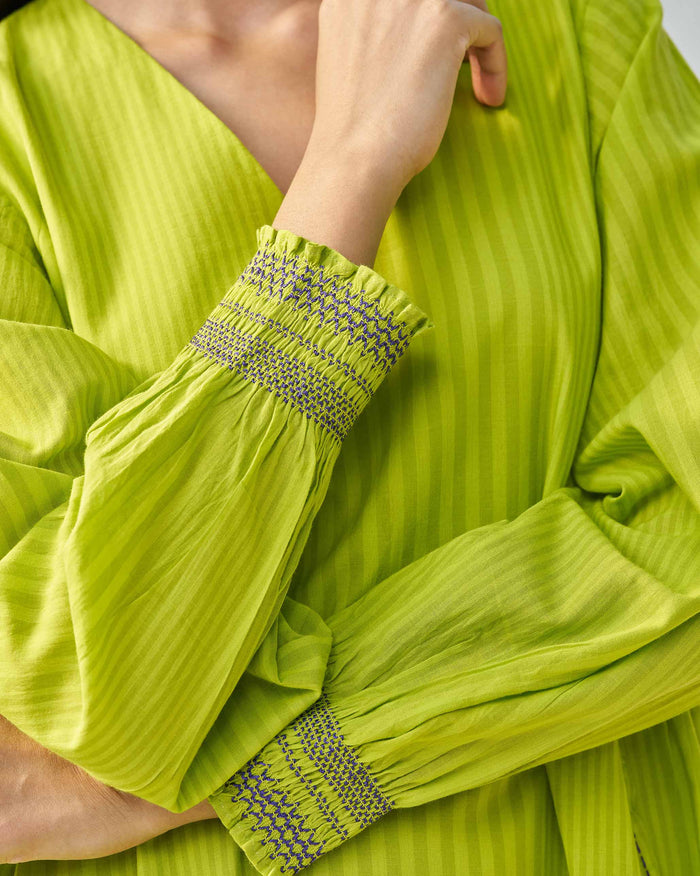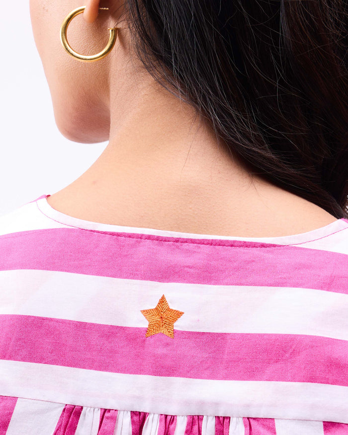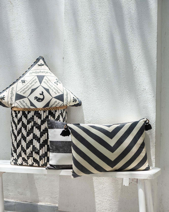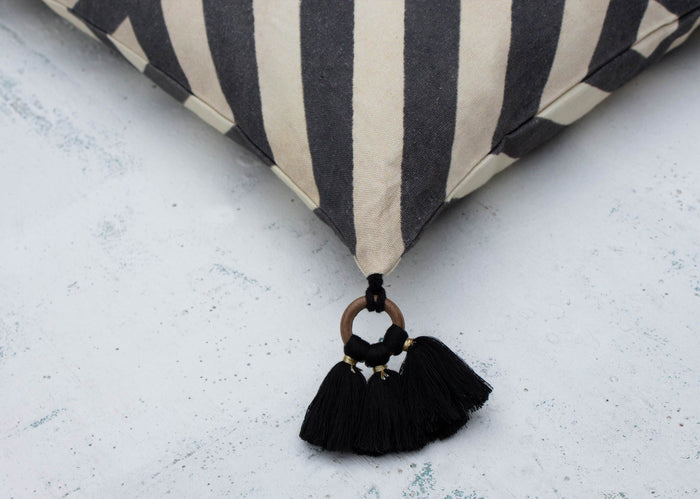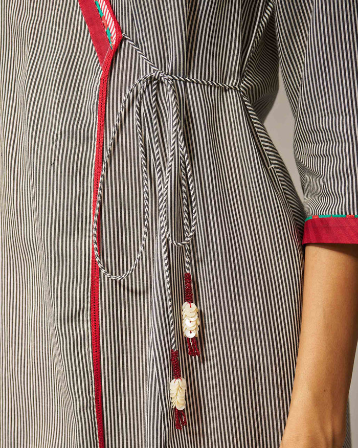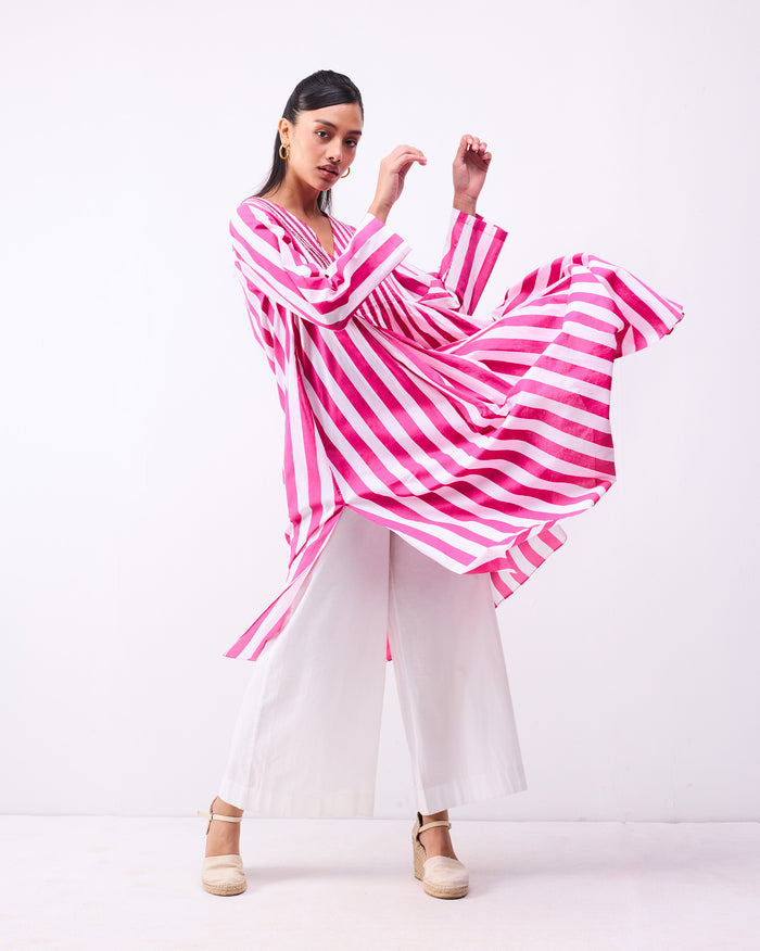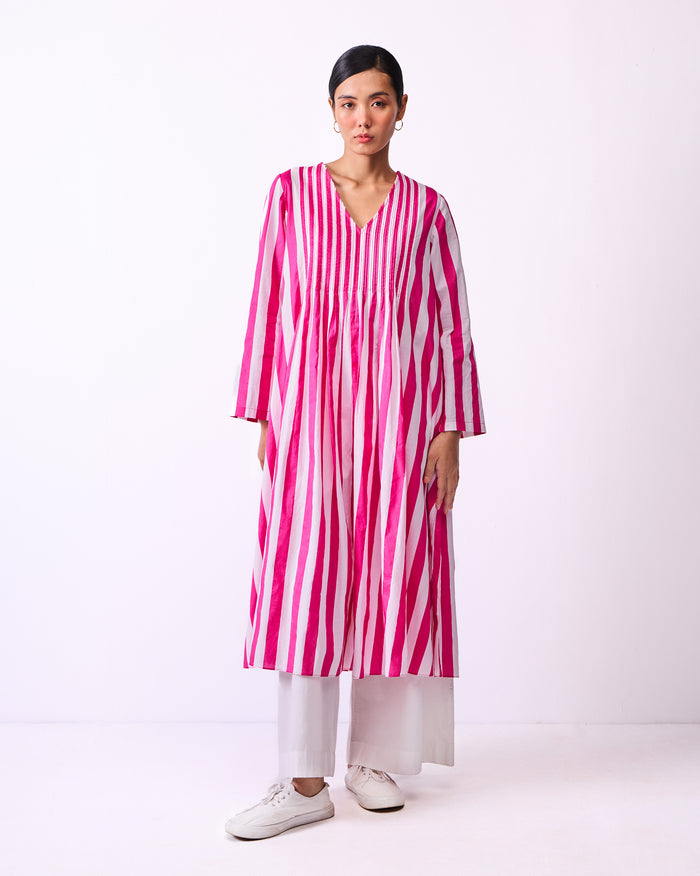 Aliyah Tie Kurta - Black & Ivory Stripes