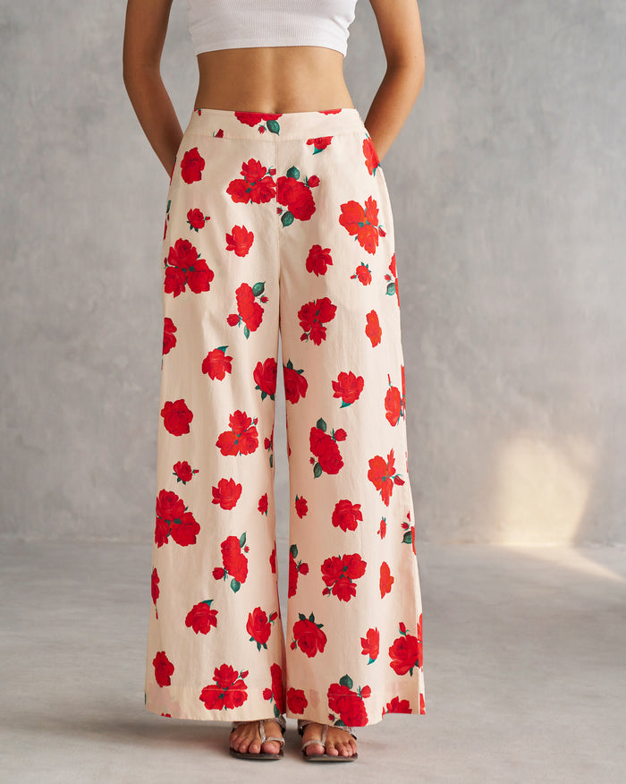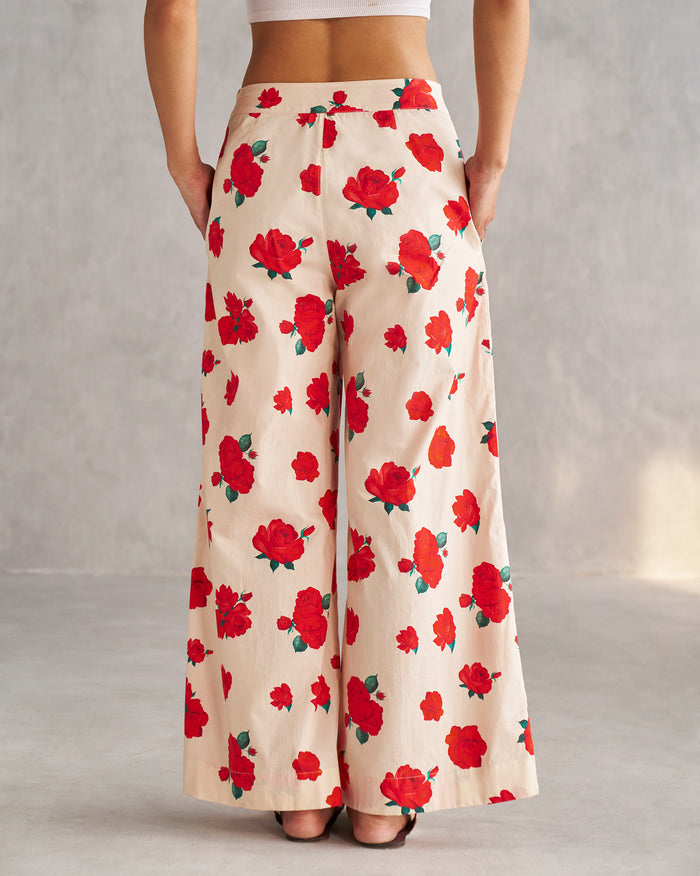 Sky Pants - Ivory & Red
