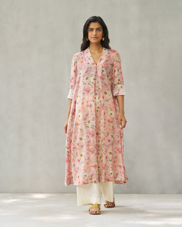 Banko V-neck Kurta - Pink