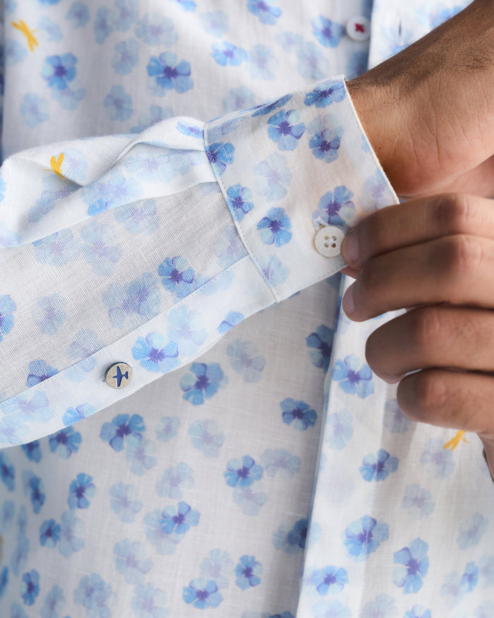 One Button Shirt - White & Blue