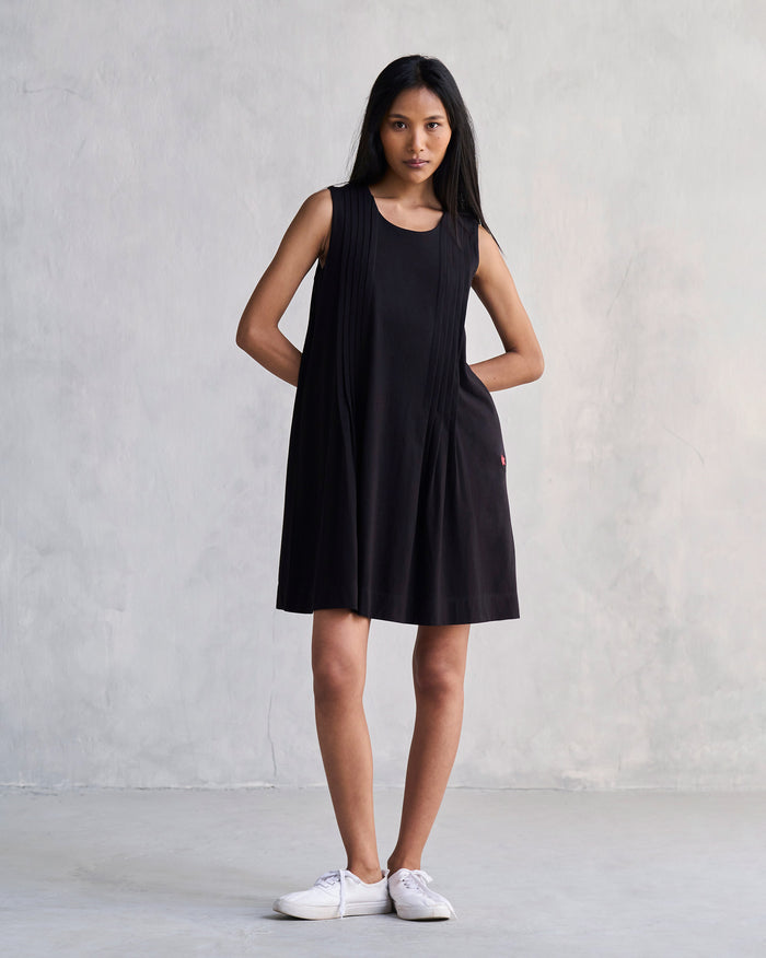Pintuck Knit Dress - Black