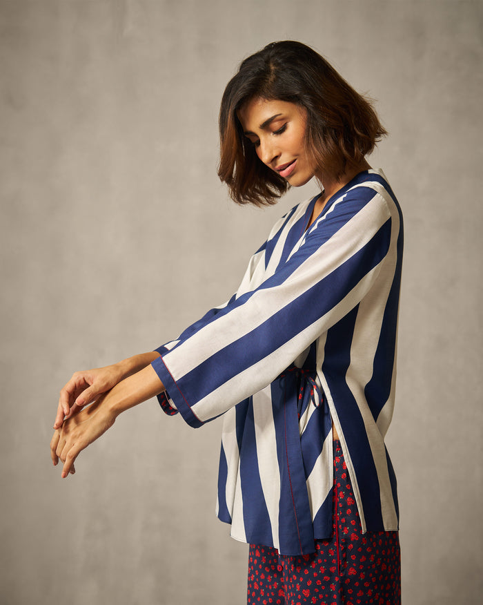 Fern Wrap Top - Navy & Ivory Print