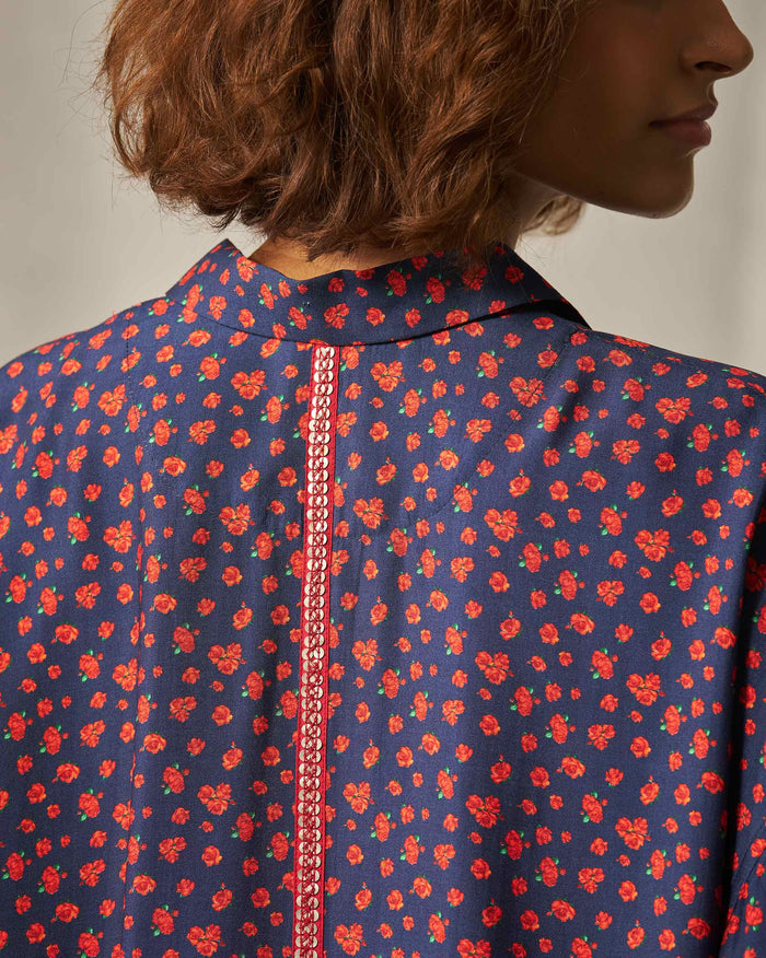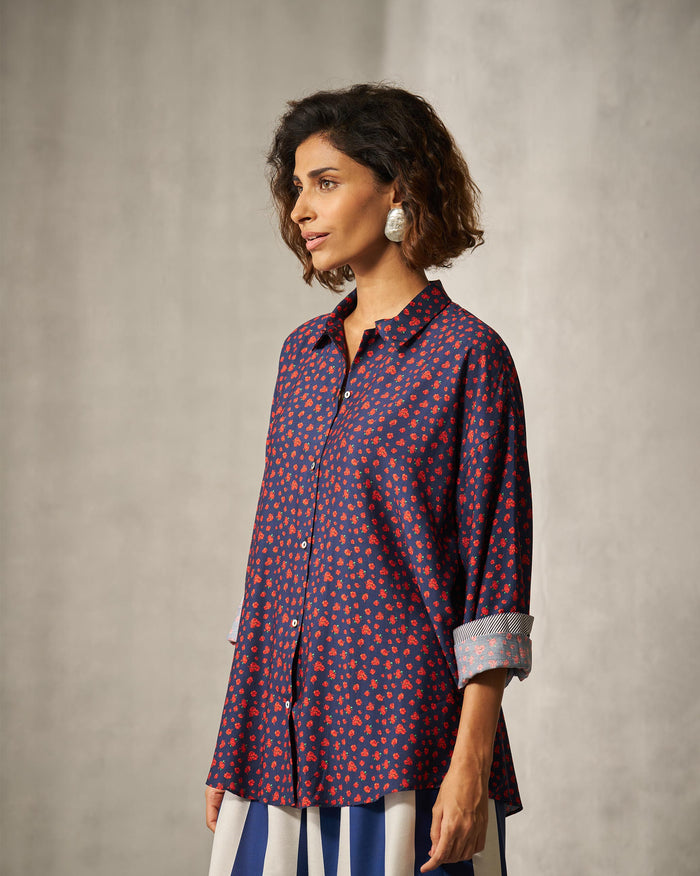 Oversized Shirt - Navy & Red Print