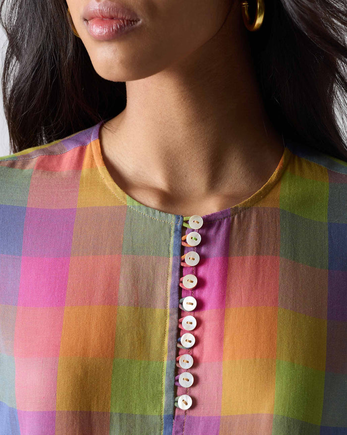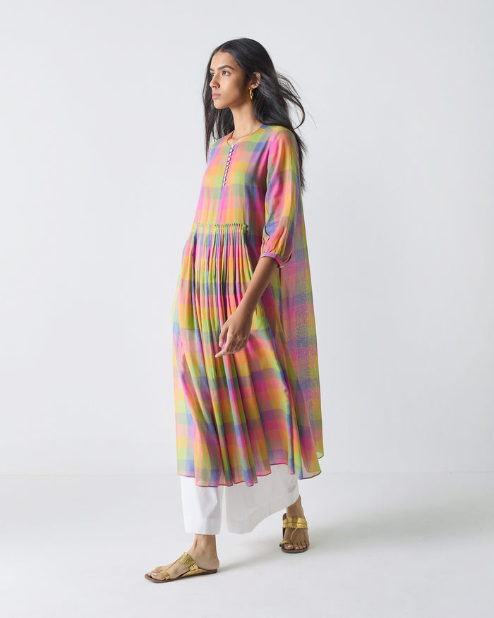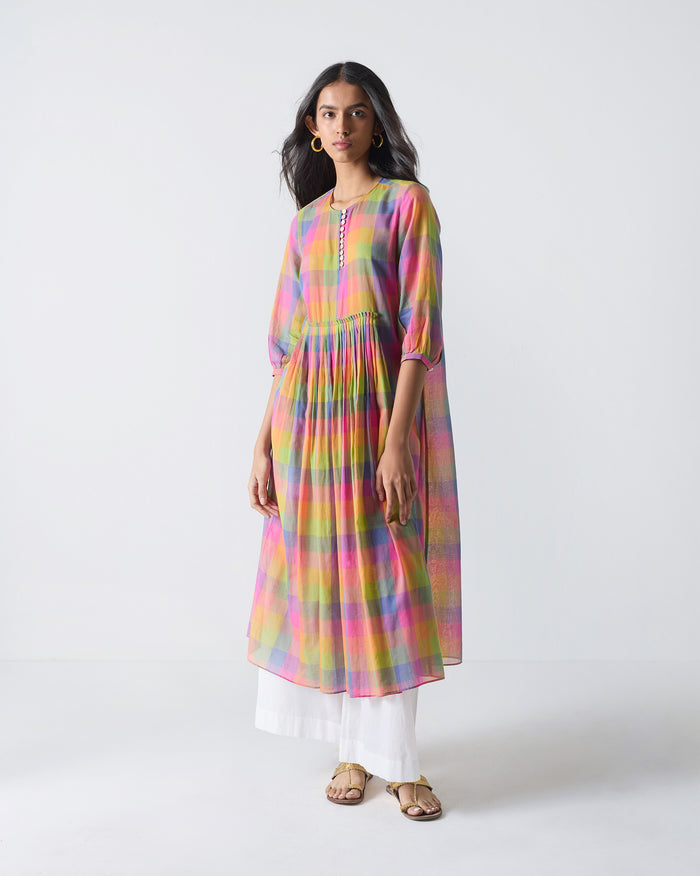 Pleated Waist Kurta - Multi Color Checks