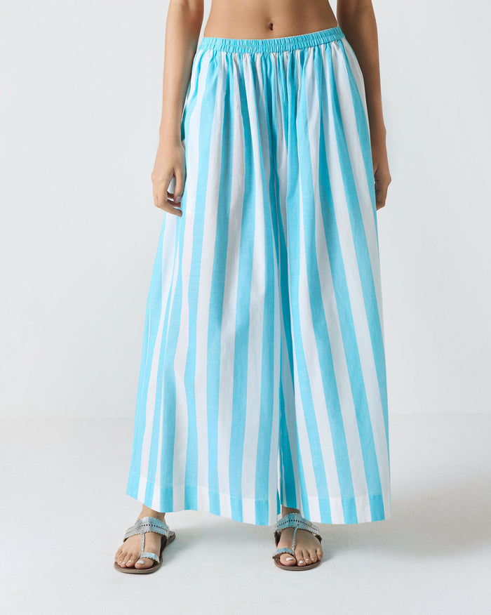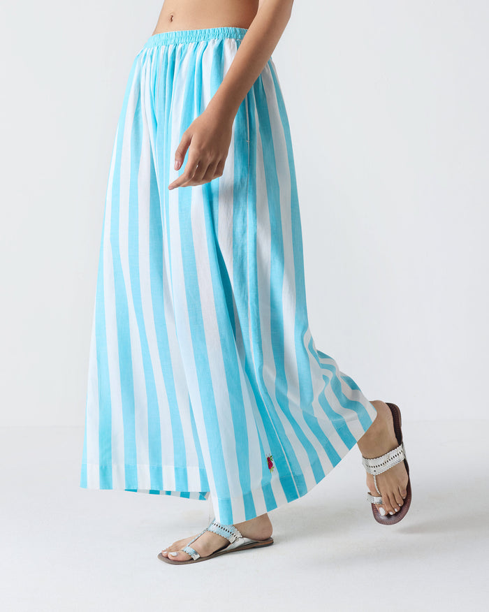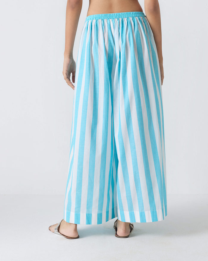Soto Flared Pants - Aqua & White Stripes