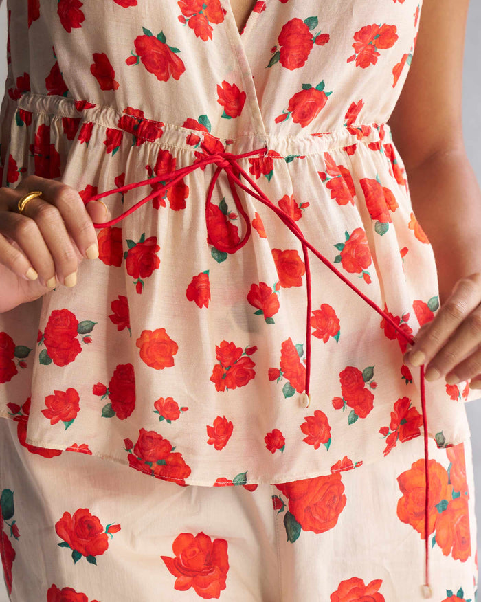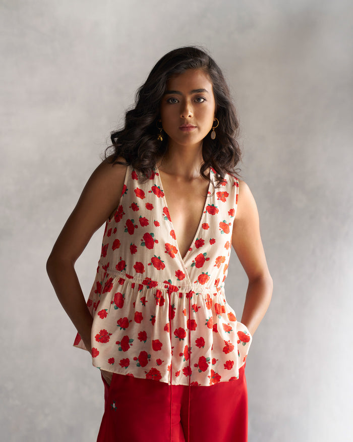 Floret Top - Ivory & Red