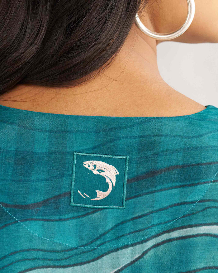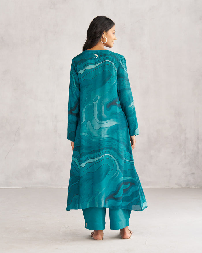 V-Neck Flare Kurta - Teal Tssxnb