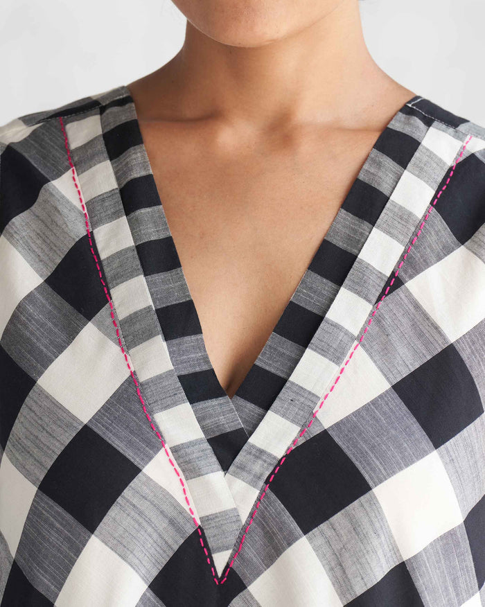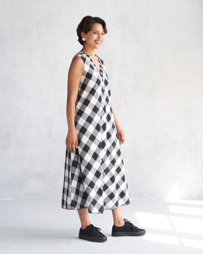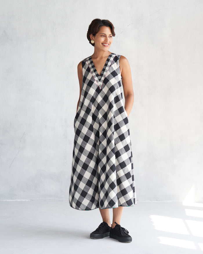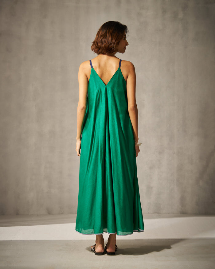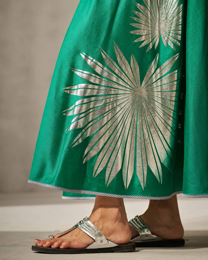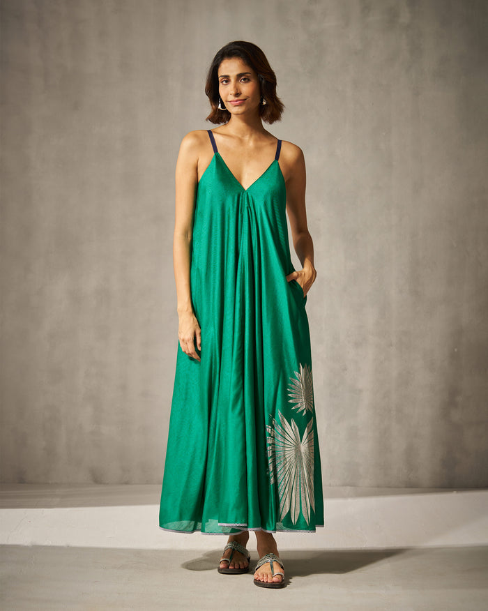 V-Neck Strappy Dress - Green & Silver Foil Print