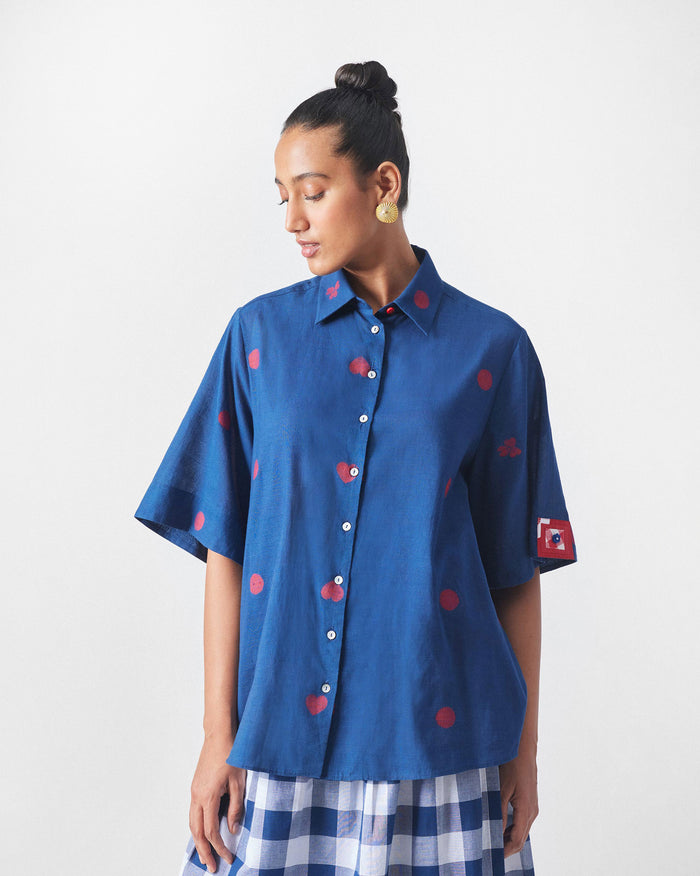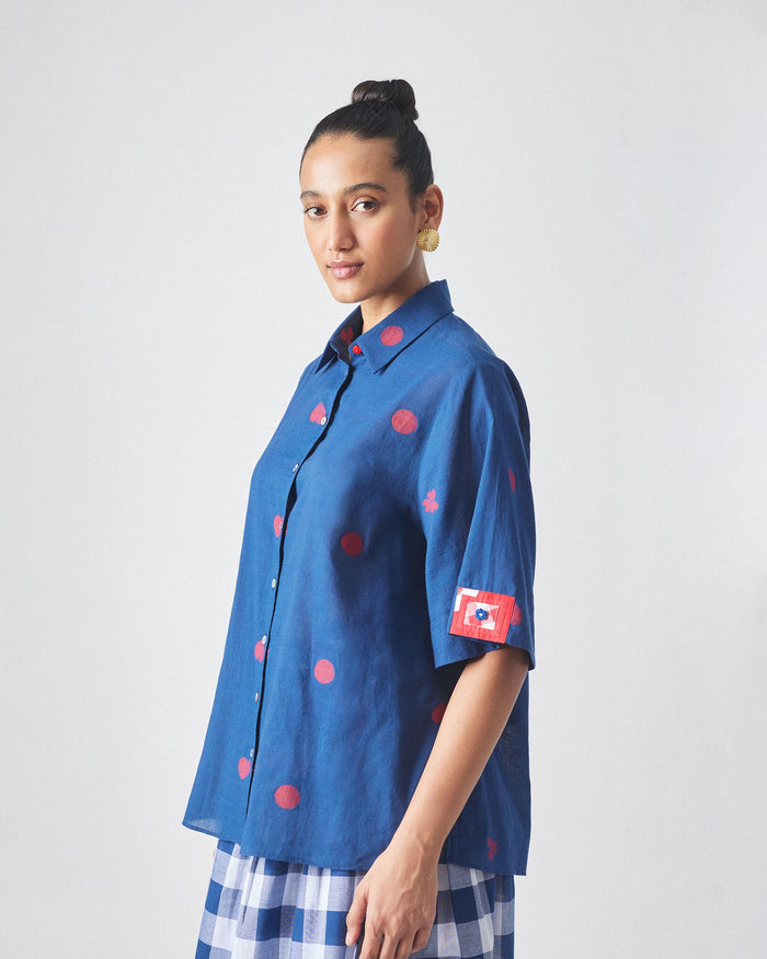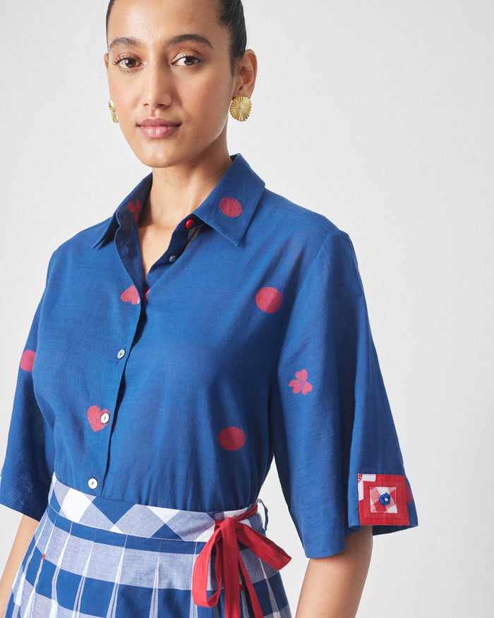 Drop Hem Shirt - Blue & Red