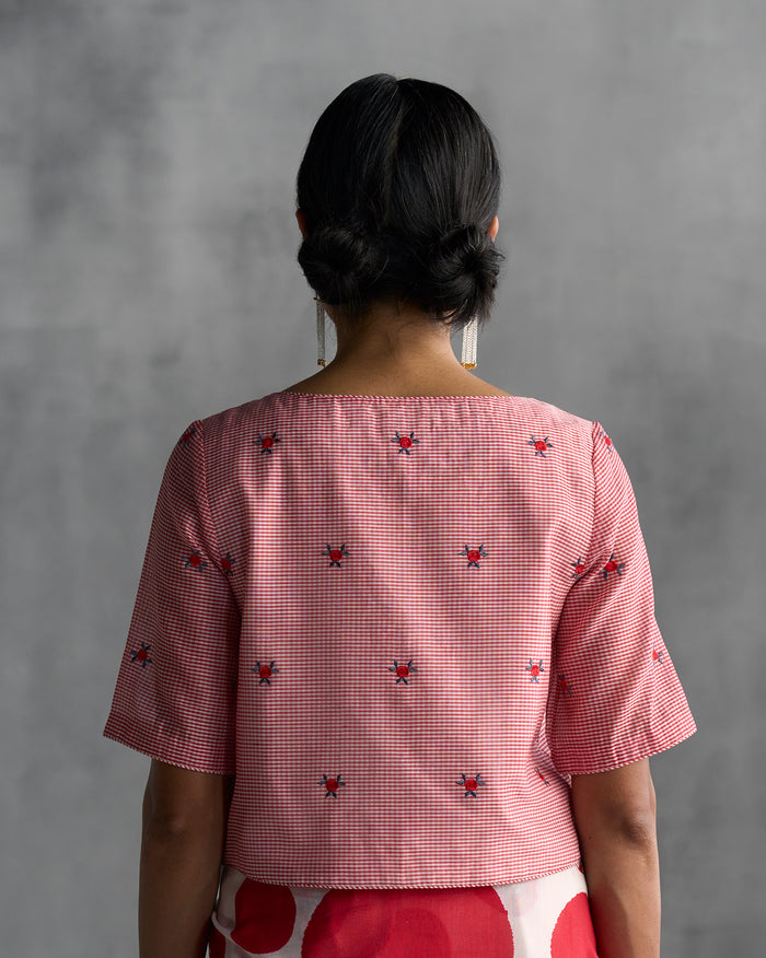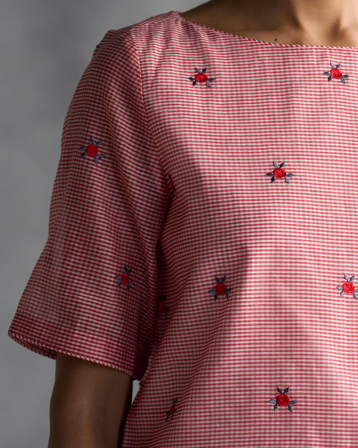 Boat Neck Blouse - Red