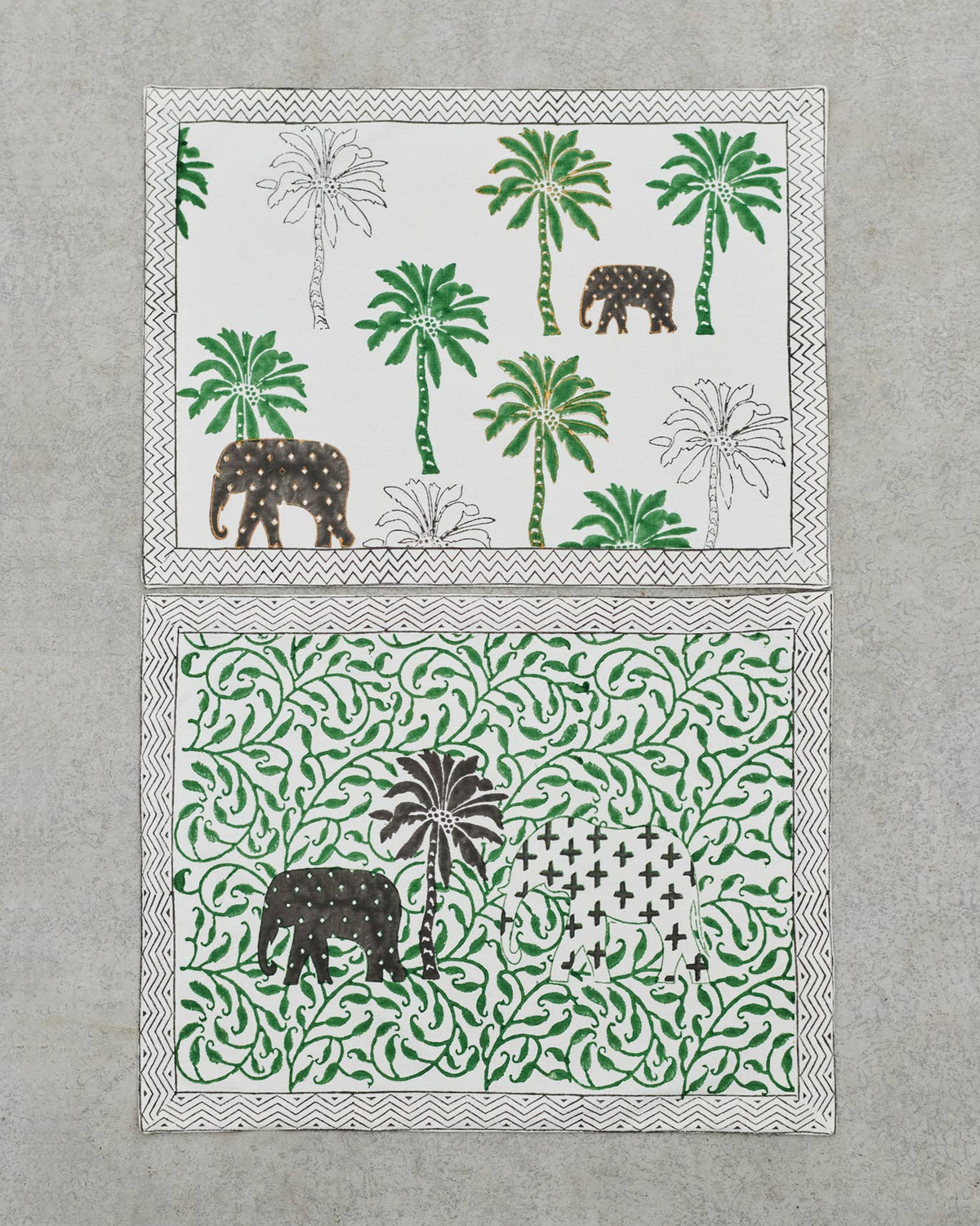 - Set of two: Hand-block printed cotton placemats featuring stylised foliage that tackle both elevated and casual tabslescapes alike