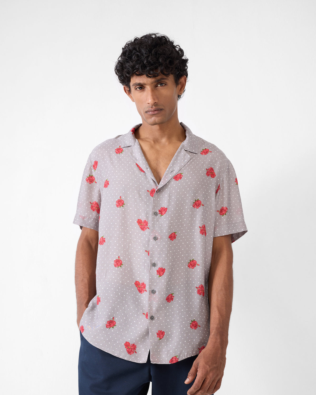 - The Mistari Shirt is crafted in a fluid modal-cupro blend and printed all over with our signature rose—bold, graphic, and made for a night out.
