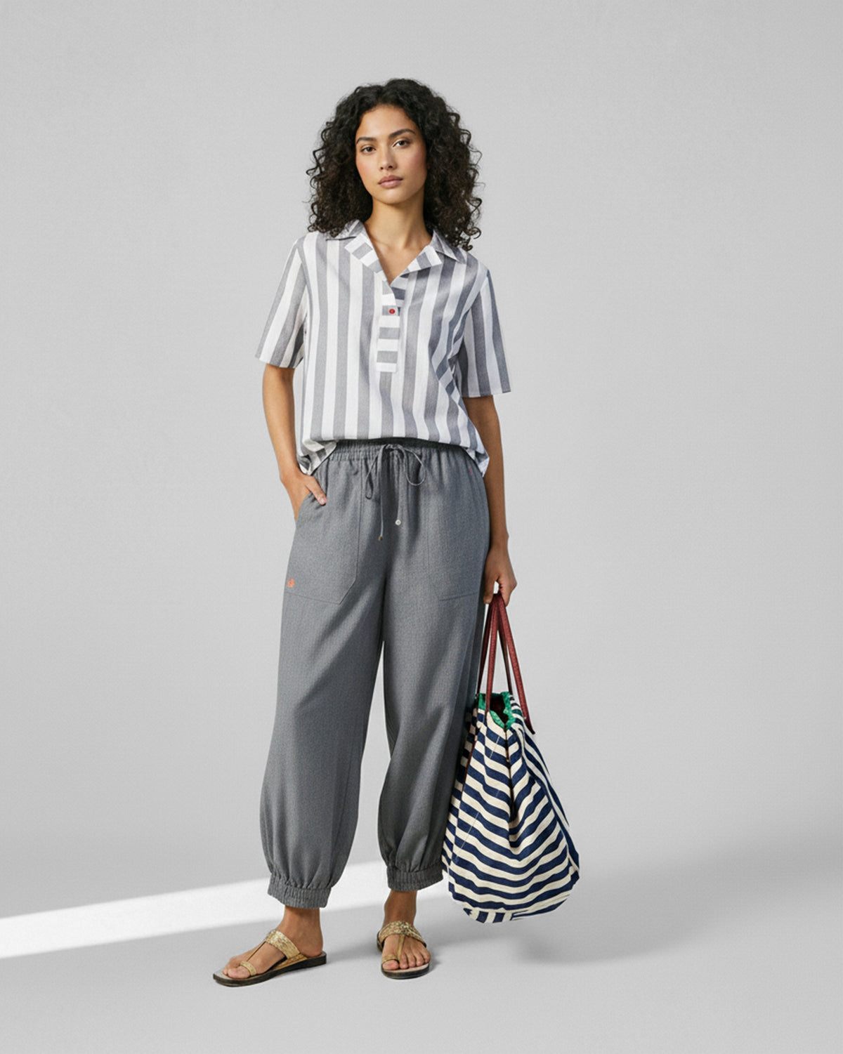 - Crafted in 100% yarn dyed cotton stripes, it comes in charcoal and white, crisp, breathable, and timeless.