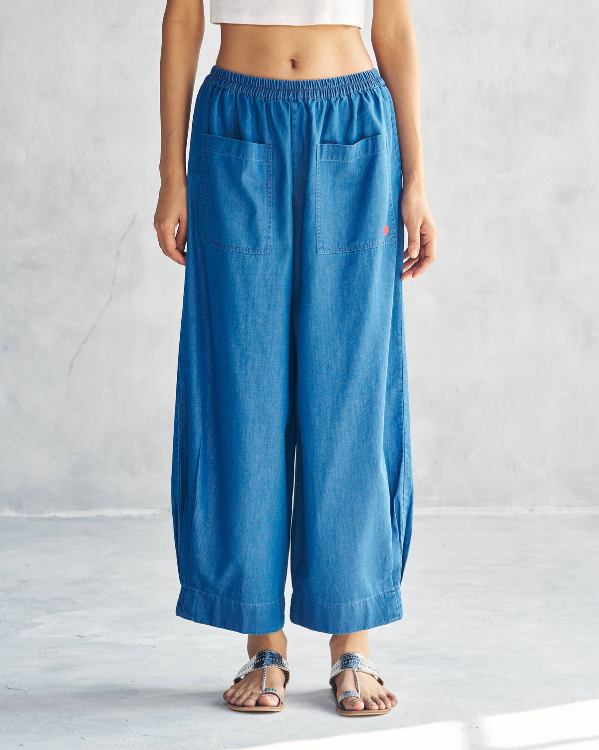 - Form meets function, these blue pants feature two convenient patch pockets in the front, providing both practicality and a touch of flair.