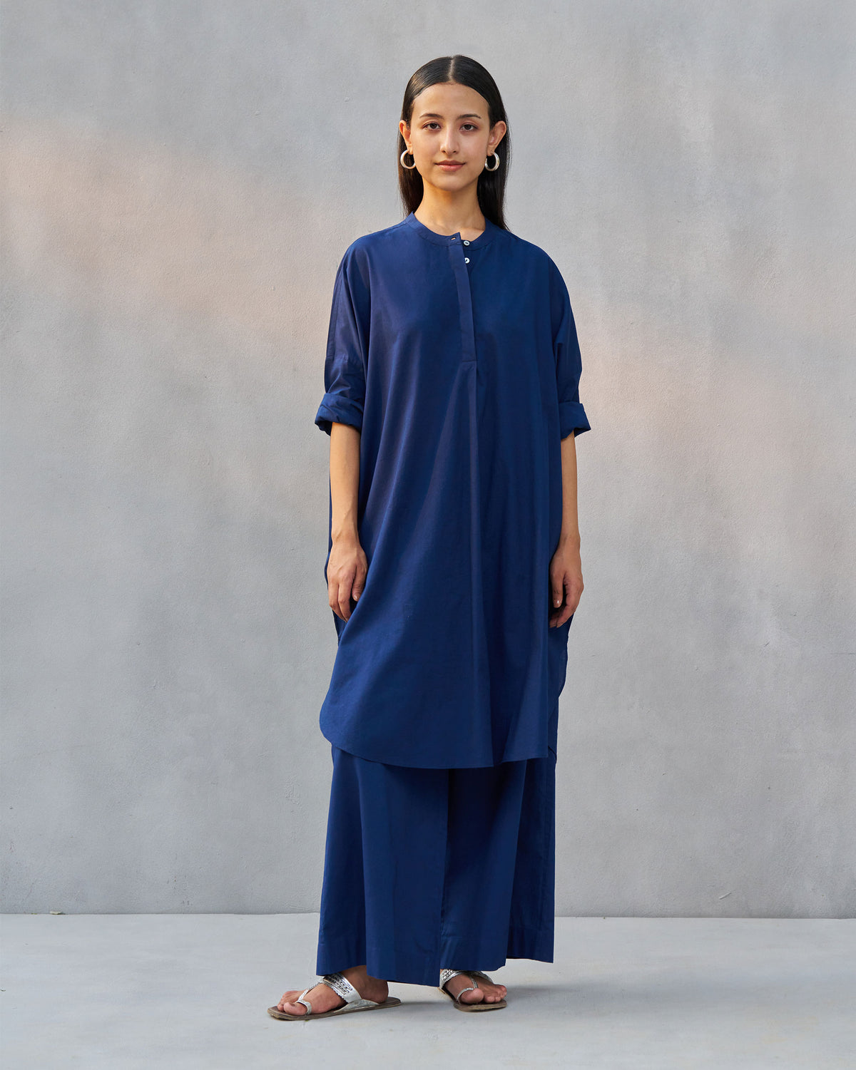 - Crafted in light and crisp organic cotton with batwing sleeves, the tunic works effortlessly. The pyjama features an a-line silhouette that ends in a gentle flare.