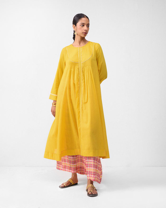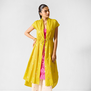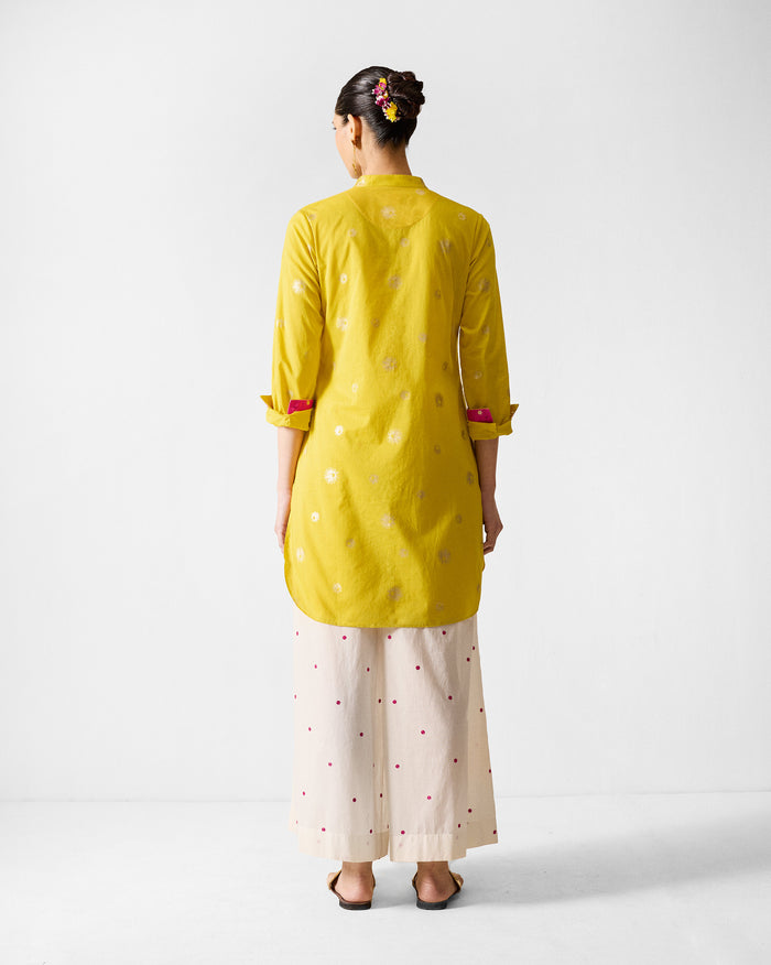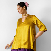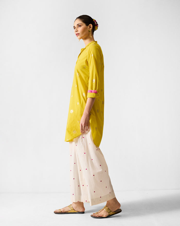 Basic Mid Length Kurta - Chartreuse & Gold Printed