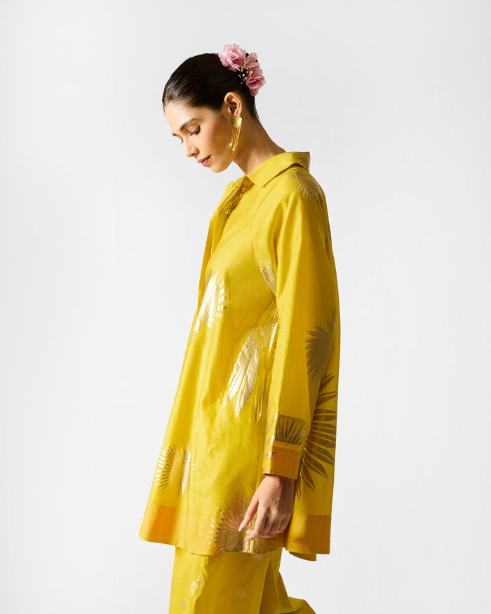 Flare Panelled Shirt - Chartreuse & Gold Printed