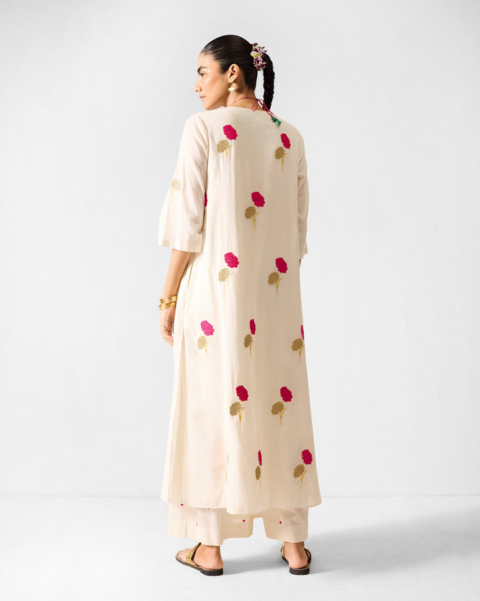 Hampi Kurta - Ivory & Fuchsia Embroidered