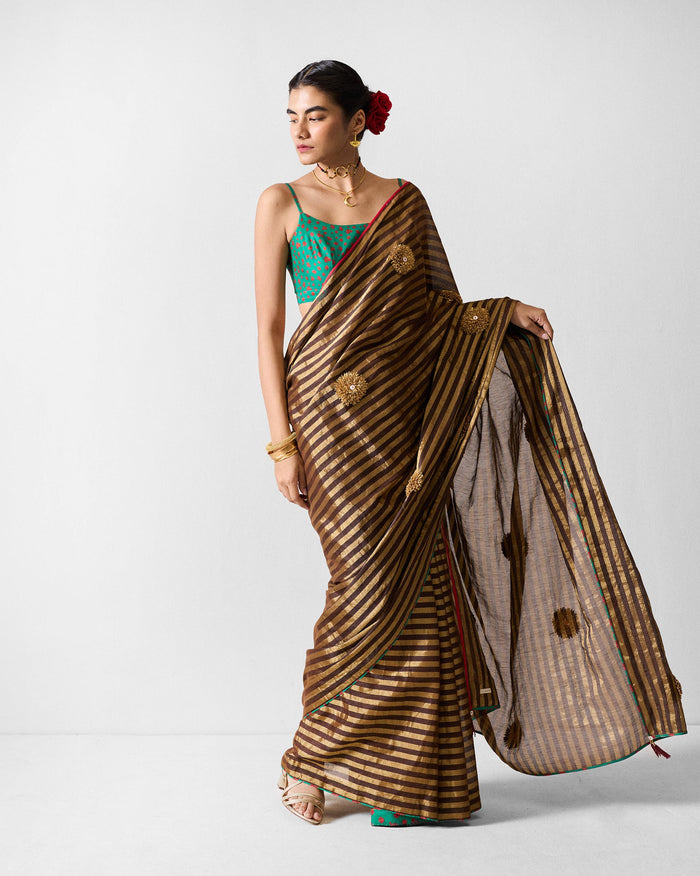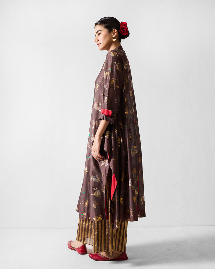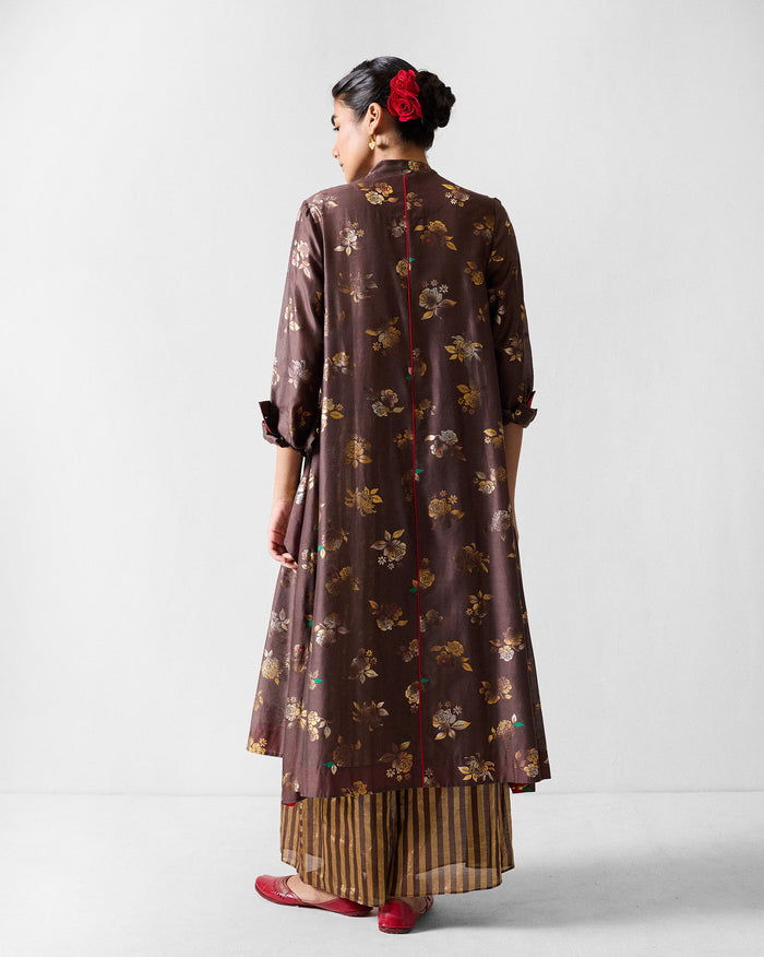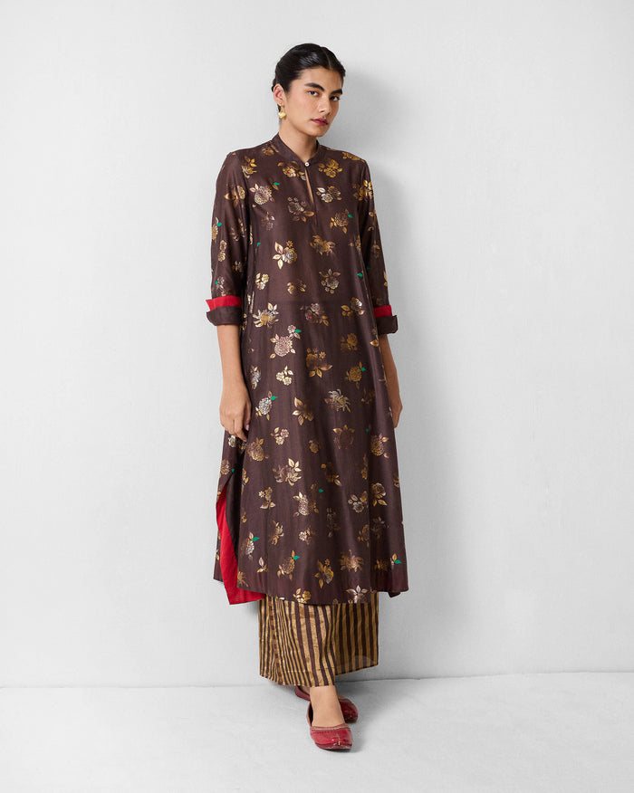 Kovai Kurta - Chocolate Brown & Gold Printed