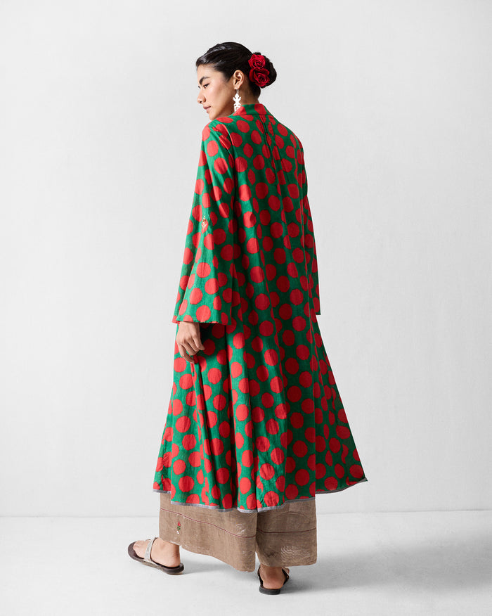 Fit & Flare Angrakha - Red & Ivory Embroidered