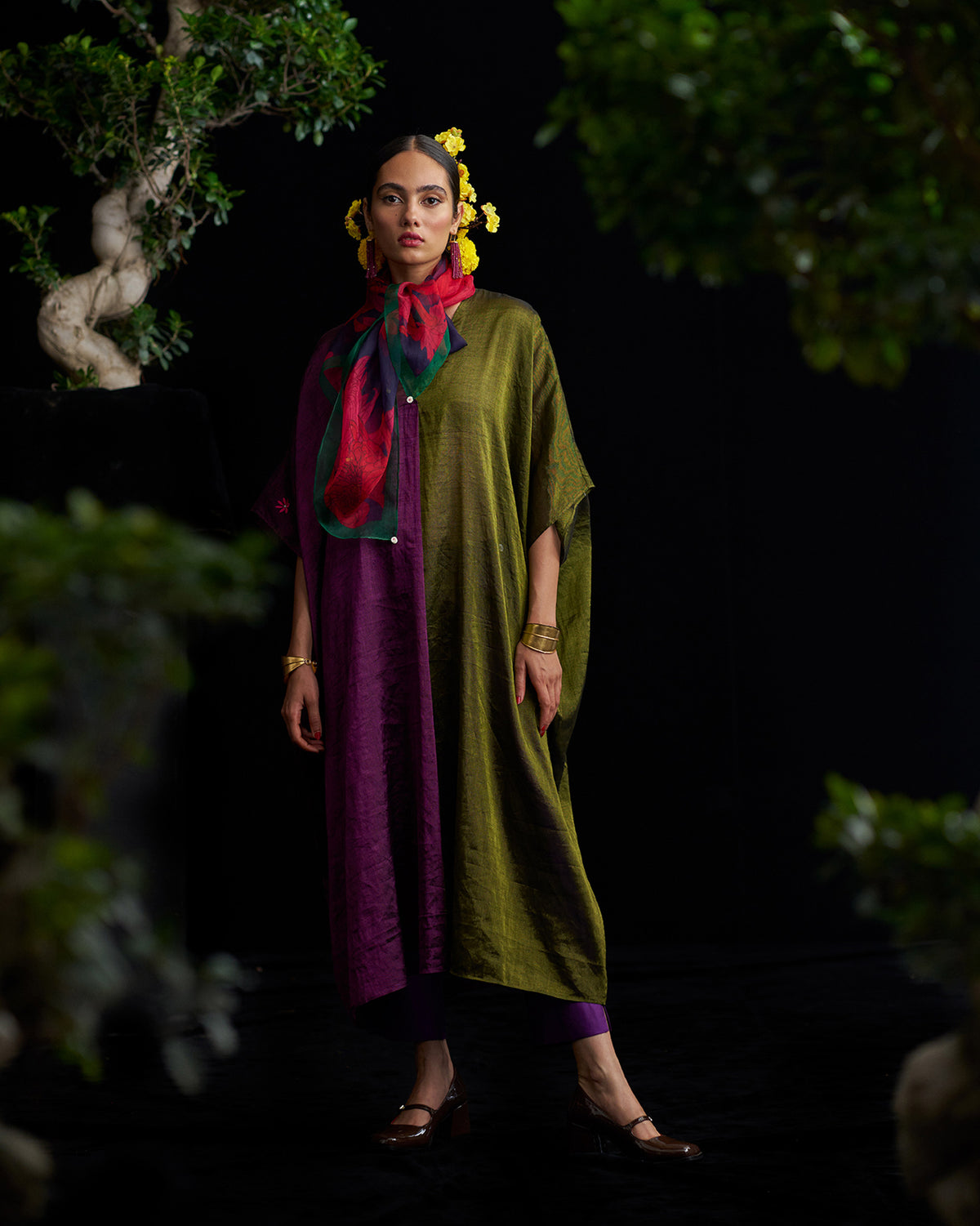 Araya Kaftan - Olive & Purple