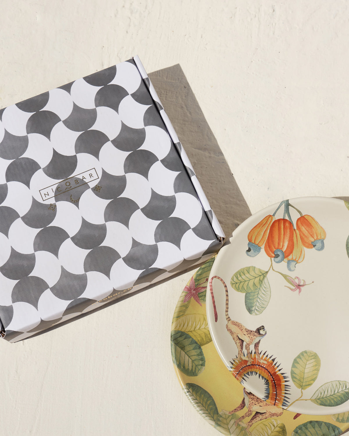 - A quarter plate with motifs inspired by the indigenous multi-coloured flora and fauna of Myanmar